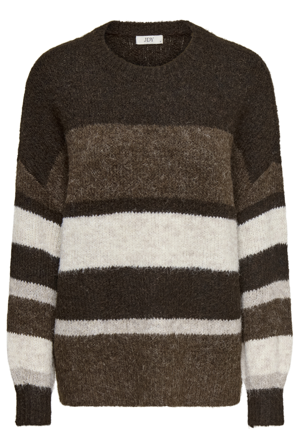 De Jacqueline de Yong trui is een stijlvolle toevoeging aan je wintergarderobe. Met de regular fit pasvorm en de klassieke ronde hals, biedt deze trui de ideale mix van comfort en stijl. Het bruine ontwerp wordt versterkt door brede strepen in neutrale kleuren, wat een tijdloze uitstraling geeft. Gemaakt voor dames, voelt de trui aangenaam op de huid en is perfect voor koude dagen dankzij de lange mouwen. Of je nu thuis blijft of een dagje uit plant, deze trui staat garant voor een modieuze look. Met de veelzijdige stijl van deze Jacqueline de Yong trui, kun je eindeloos combineren. Draag hem met je favoriete jeans voor een casual outfit of combineer met een rok voor een iets formelere uitstraling. De normale lengte en de structuur van het breisel zorgen ervoor dat het een duurzaam kledingstuk is dat je keer op keer met plezier zult dragen. Geschikt voor verschillende gelegenheden en makkelijk te dragen, deze trui is een perfecte match voor talloze winterse situaties.