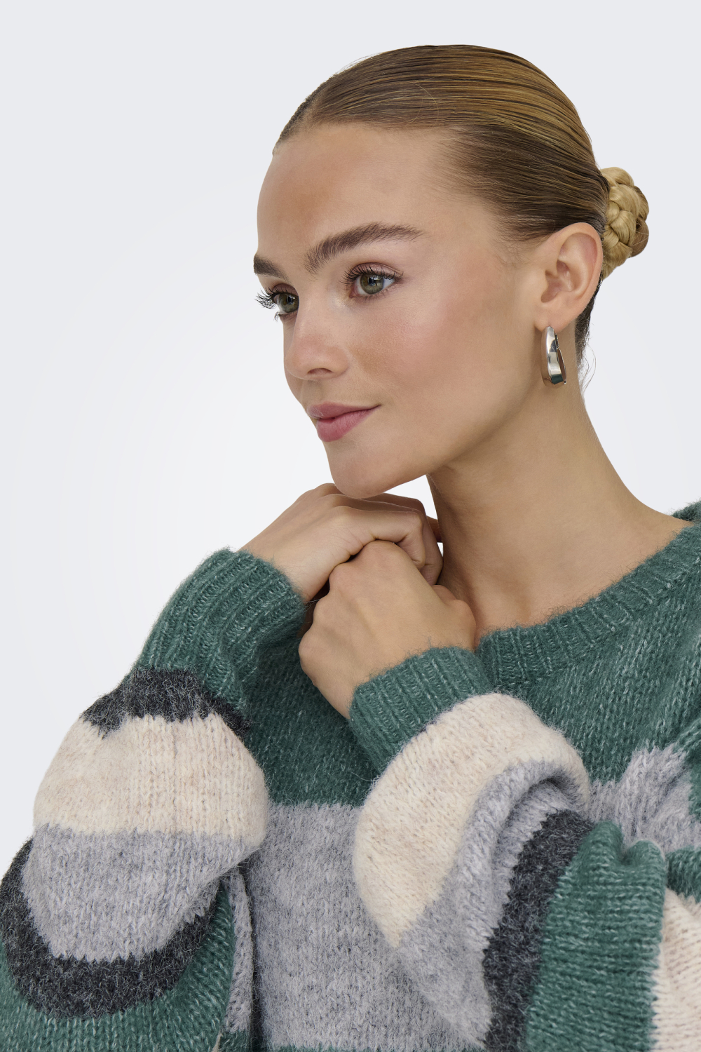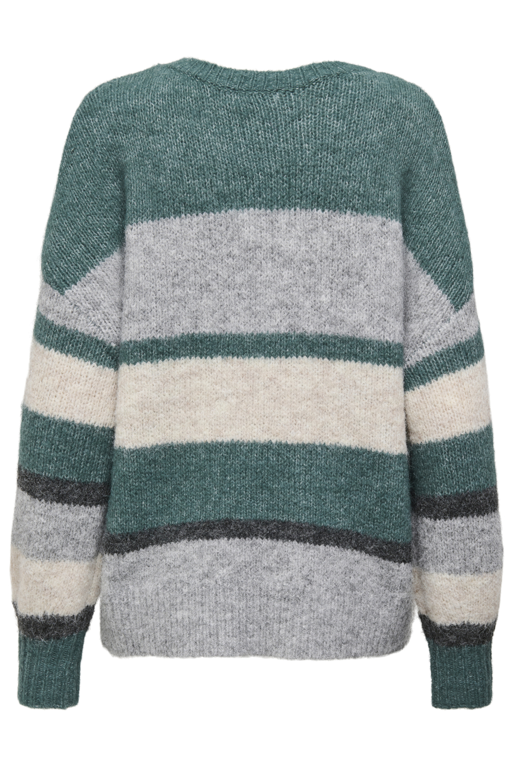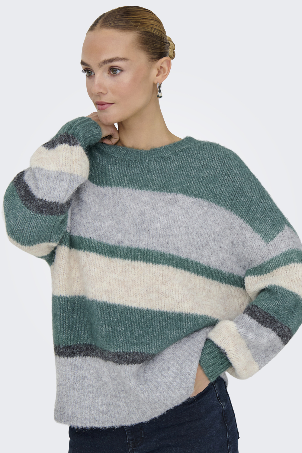 Deze trui van Jacqueline de Yong, uit de knitwear collectie, is een stijlvolle keuze voor elke wintergarderobe. De trui heeft een regular fit en is ontworpen met een speels streeppatroon waarbij de kleuren groen, grijs en beige prachtig samenkomen. De lange mouwen en de ronde hals maken deze trui comfortabel voor de koude seizoenen. Perfect voor dagelijks gebruik of een gezellige bijeenkomst met vrienden. Met zijn normale lengte en elegante uitstraling is deze trui ideaal te combineren met je favoriete jeans of een nette rok. De zachte stof voelt aangenaam aan op de huid en biedt voldoende warmte tijdens de kille dagen. Of je nu een drukke werkdag hebt of een ontspannen weekend voor de boeg, deze trui zorgt voor een moeiteloze en modieuze look. Een duurzame keuze die zowel stijlvol als functioneel is.