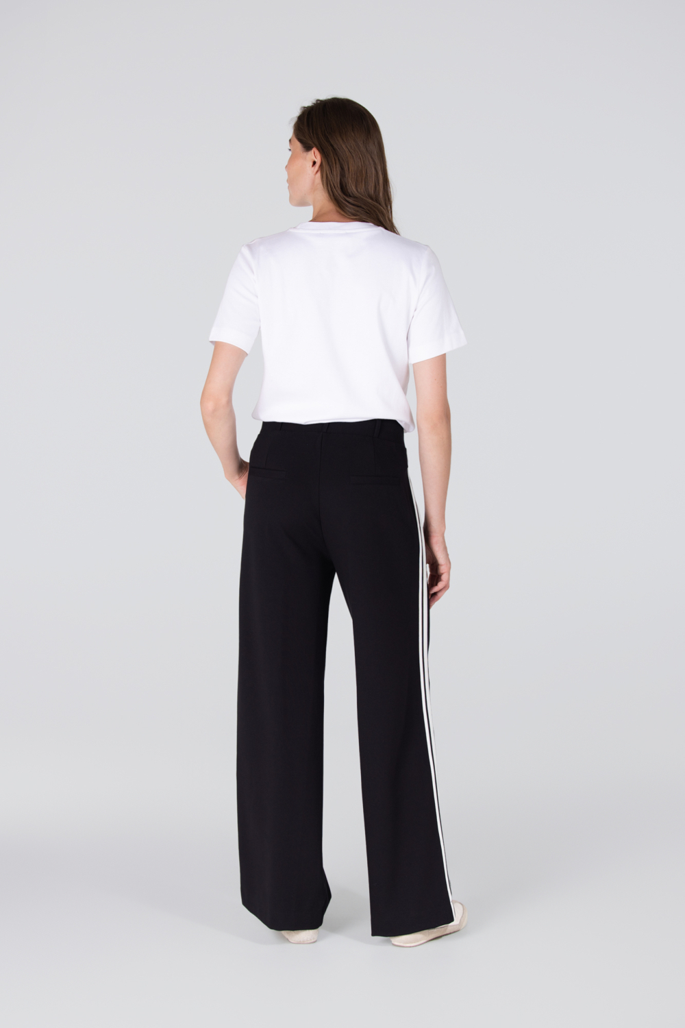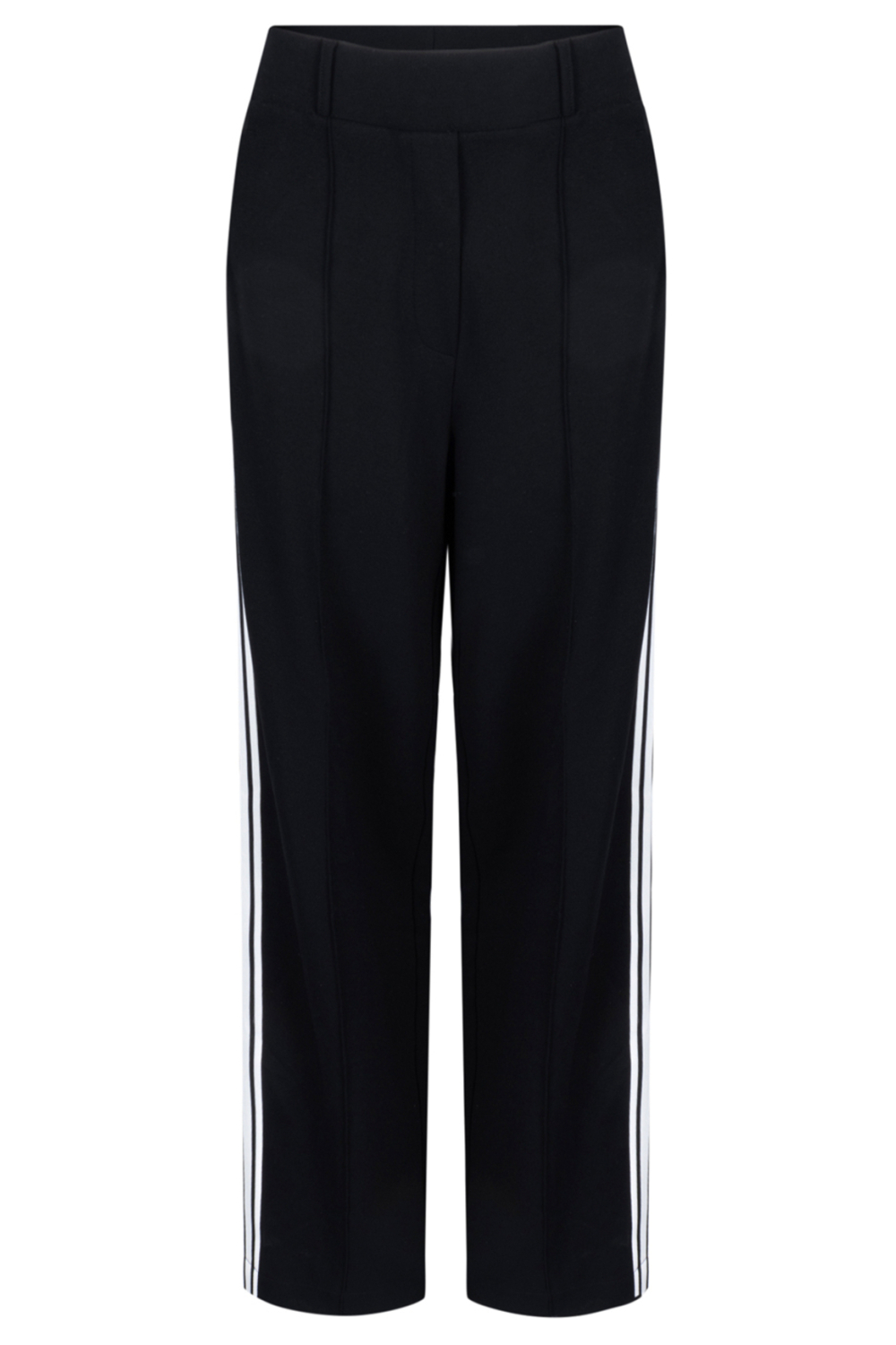 De Juffrouw Jansen broek is een moderne keuze voor iedere casual gelegenheid. Deze damesbroek heeft een trendy wide leg pasvorm met een hoge taille, ontworpen om zowel comfort als stijl te bieden. De zwarte stof is voorzien van opvallende, witte strepen langs de zijkanten die de klassieke uitstraling een eigentijdse twist geven. Dankzij de elastische boord sluit de broek mooi aan zonder in te boeten aan bewegingsvrijheid, en de handige steekzakken maken het helemaal af.