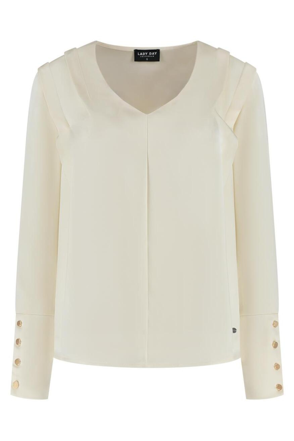 De Lady Day blouse straalt eenvoud en klasse uit, en is perfect te combineren met een chique rok voor een avondje uit of met een nette chino voor kantoor. De subtiele goudkleurige knopen op de manchetten voegen een vleugje luxe toe, waardoor het geheel een verfijnde uitstraling krijgt. Of je nu naar een afspraak gaat of een weekendje weg plant, deze blouse matcht moeiteloos met verschillende stijlen en is een smaakvolle keuze voor iedere vrouw.