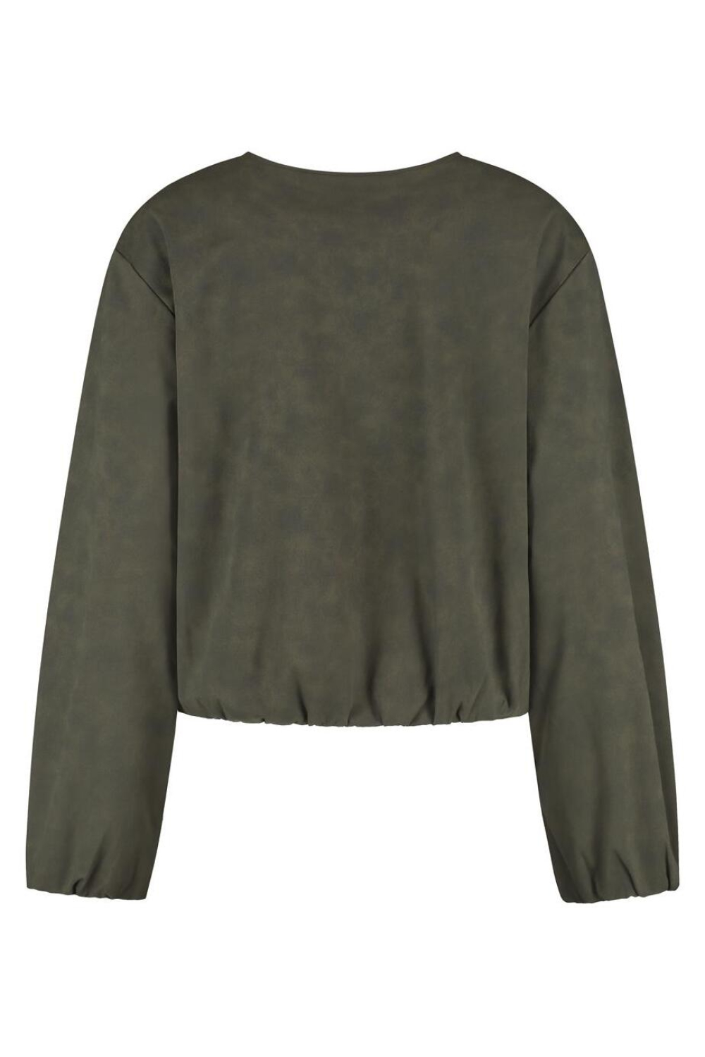 De kortere lengte van de jas maakt hem perfect voor casual settings, of je nu een wandeling maakt in de stad of een informele bijeenkomst hebt. De donkere olijfkleur biedt veelzijdigheid in het combineren met andere kledingstukken, of je nu kiest voor een jeans of een stijlvolle rok. Of je nu op weg bent naar werk of een middagje uit, deze Lady Day jas biedt de perfecte balans tussen comfort en eigentijdse stijl.