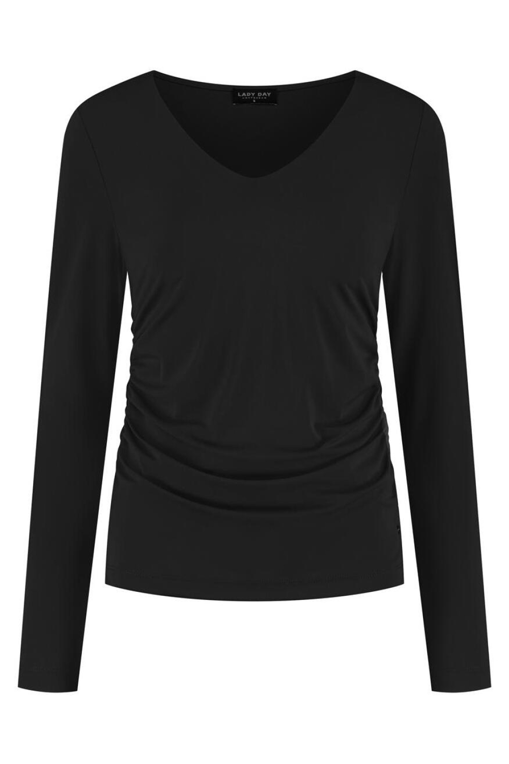 Dit zwarte dames T-shirt van Lady Day straalt subtiele elegantie uit en is een veelzijdige toevoeging aan je wintergarderobe. Het ontwerp met een slank gesneden pasvorm en V-hals zorgt voor een moderne, casual uitstraling. Gemaakt van een mix van 80% polyamide en 20% elastaan, biedt dit T-shirt zowel stretch als comfort. De details in de stof benadrukken de vrouwelijke contouren op een smaakvolle manier, terwijl de lange mouwen het ideaal maken voor de koudere seizoenen.