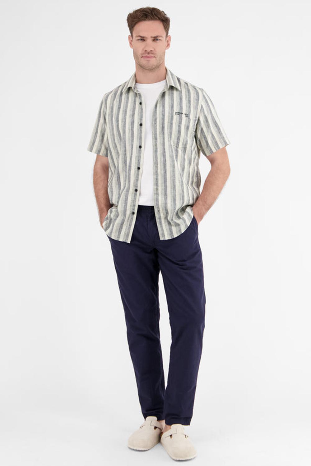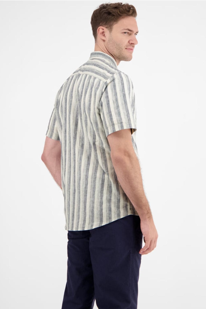 Overhemd van Lerros met korte mouwen. Dit item is voorzien van een puntkraag en sluit met knopen aan de voorkant. Het overhemd heeft een borstzak en een allover gestreept patroon.