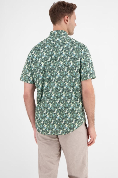 Overhemd van Lerros met korte mouwen. Dit item is voorzien van een button down kraag. Het overhemd sluit met knopen aan de voorkant en heeft een allover bloemen patroon.