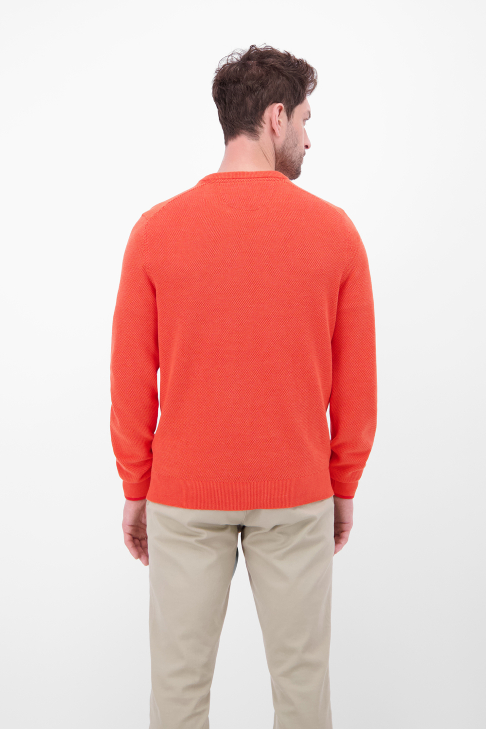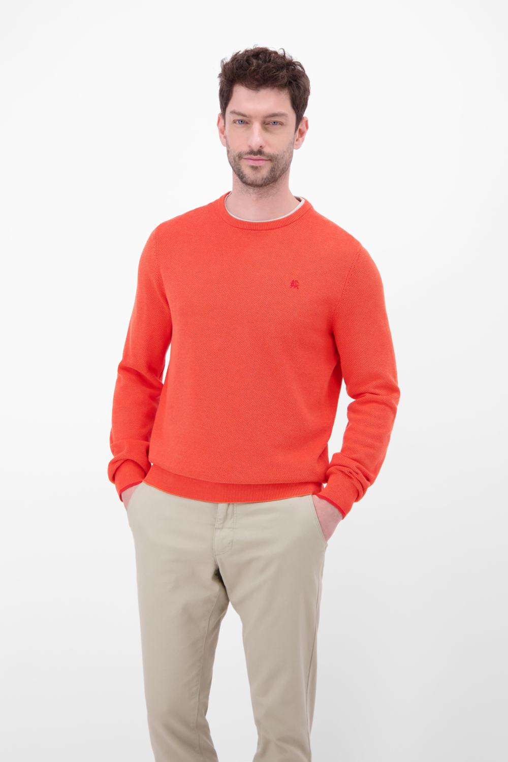 Deze casual trui van Lerros, met zijn opvallende oranje tint, is een ideale toevoeging aan jouw herengarderobe. Gemaakt van 100% BCI-katoen biedt deze trui comfort en duurzaamheid. Het heeft een regular fit pasvorm, wat zorgt voor een ontspannen, maar stijlvolle uitstraling. De ronde hals en de subtiele structuur in de stof geven de trui een moderne touch, terwijl de lange mouwen hem geschikt maken voor het hele jaar door. Met zijn veelzijdige ontwerp is deze Lerros trui perfect voor verschillende gelegenheden. Draag hem op een casual dagje uit met een lichte chino zoals op de foto, of combineer hem met een donkerder denim voor een meer geklede look. De trui heeft geen zakken, wat bijdraagt aan een gestroomlijnde vorm. Of je hem nu draagt op kantoor of tijdens een informele afspraak, deze trui biedt je altijd een stijlvolle uitstraling.