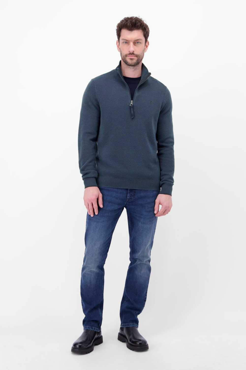 Deze casual trui van Lerros is een stijlvolle keuze voor elke man. De trui heeft een regular fit en is gemaakt van 100% BCI katoen, waardoor hij niet alleen comfortabel maar ook duurzaam is. De unieke structuur van de stof, in een elegante blauwe tint, geeft deze trui een moderne uitstraling. Met de praktische ritssluiting aan de high neck houdt de trui je lekker warm op koudere dagen zonder in te boeten aan stijl. Of je nu een dagje uitgaat of thuis ontspant, deze trui is een goede match voor jouw outfit. De combinatie van de high neck en de lange mouwen zorgt voor extra warmte en comfort, wat deze trui ideaal maakt voor de basis van je seizoensgarderobe. Door zijn veelzijdige design is hij gemakkelijk te combineren met een jeans voor een casual look of met een nette broek voor een subtiele, geklede uitstraling. Of het nu voor een rustige middag in het park is of een informele bijeenkomst, je kunt altijd op deze Lerros trui vertrouwen om je stijlvol en verzorgd te voelen.