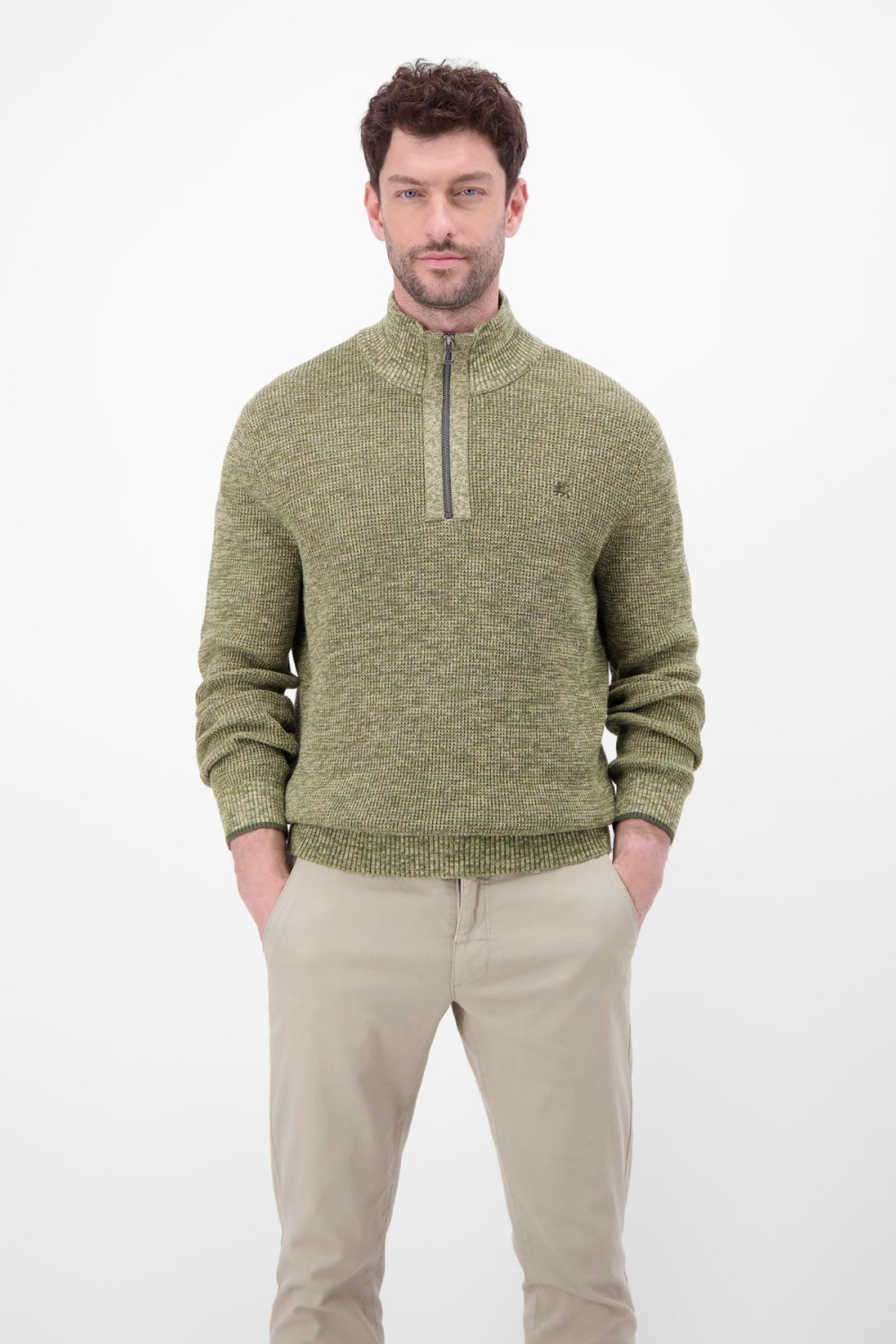Deze groene Lerros trui is een perfecte toevoeging aan je wintergarderobe. Met zijn high neck en ritssluiting biedt hij zowel warmte als gemak. De trui is gemaakt van 100% BCI katoen, waardoor hij comfortabel en duurzaam is. De subtiele structuur in het breiwerk geeft een moderne touch aan het klassieke ontwerp. Deze regular fit trui zonder zakken biedt een variabele stijloptie, ideaal voor casual dagen of een ontspannen avondje uit. Dankzij de normale lengte en lange mouwen, is deze trui geschikt voor diverse gelegenheden. Combineer hem met een nette pantalon voor een formele look, of kies voor een spijkerbroek voor een meer ontspannen uitstraling. De frisse groene tint zorgt ervoor dat je gemakkelijk kunt mixen en matchen met verschillende kleuren en stijlen uit je garderobe. Deze Lerros trui is een veelzijdige keuze die je het hele winterseizoen door warm houdt en er toch stijlvol uit laat zien.