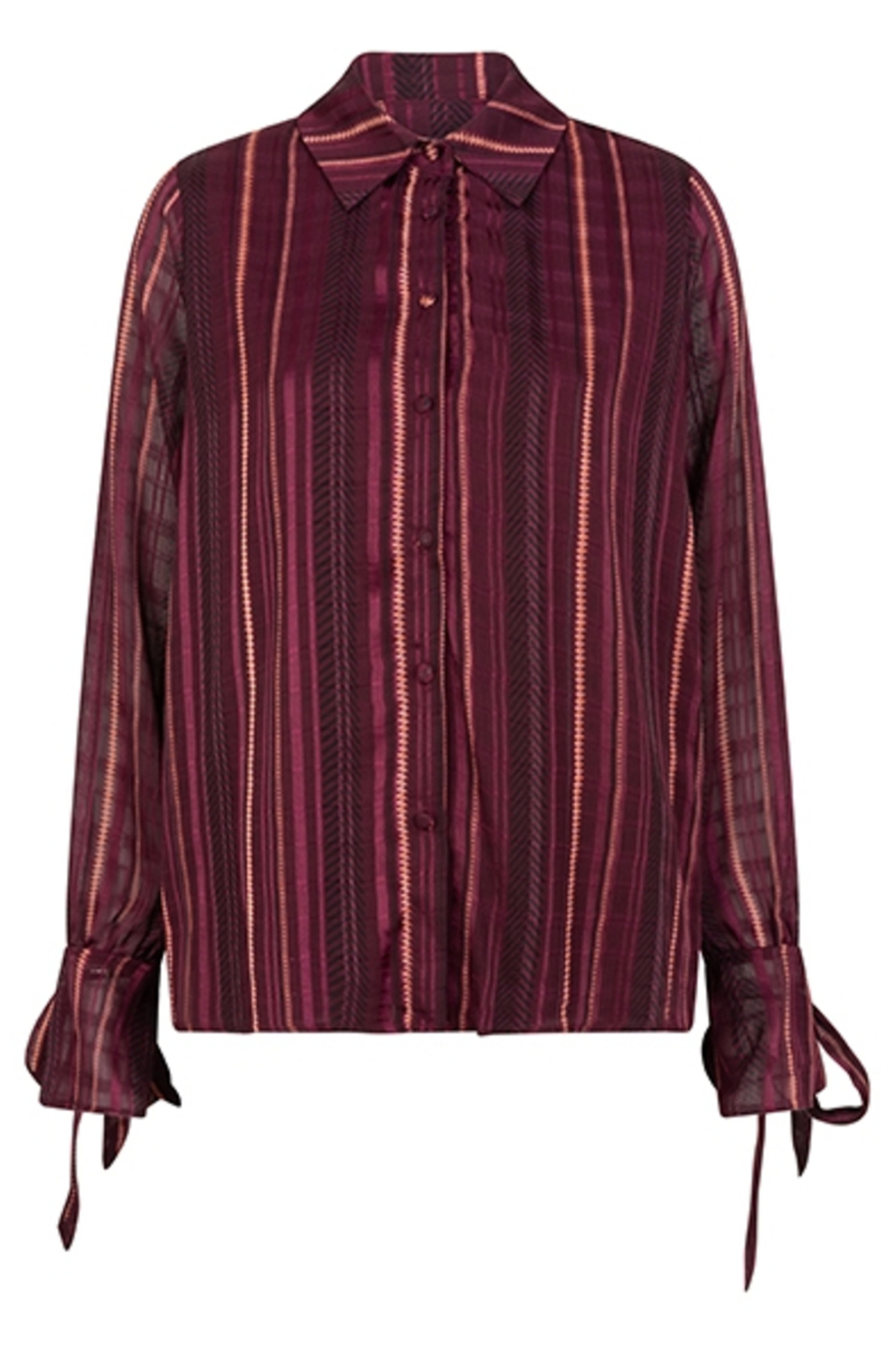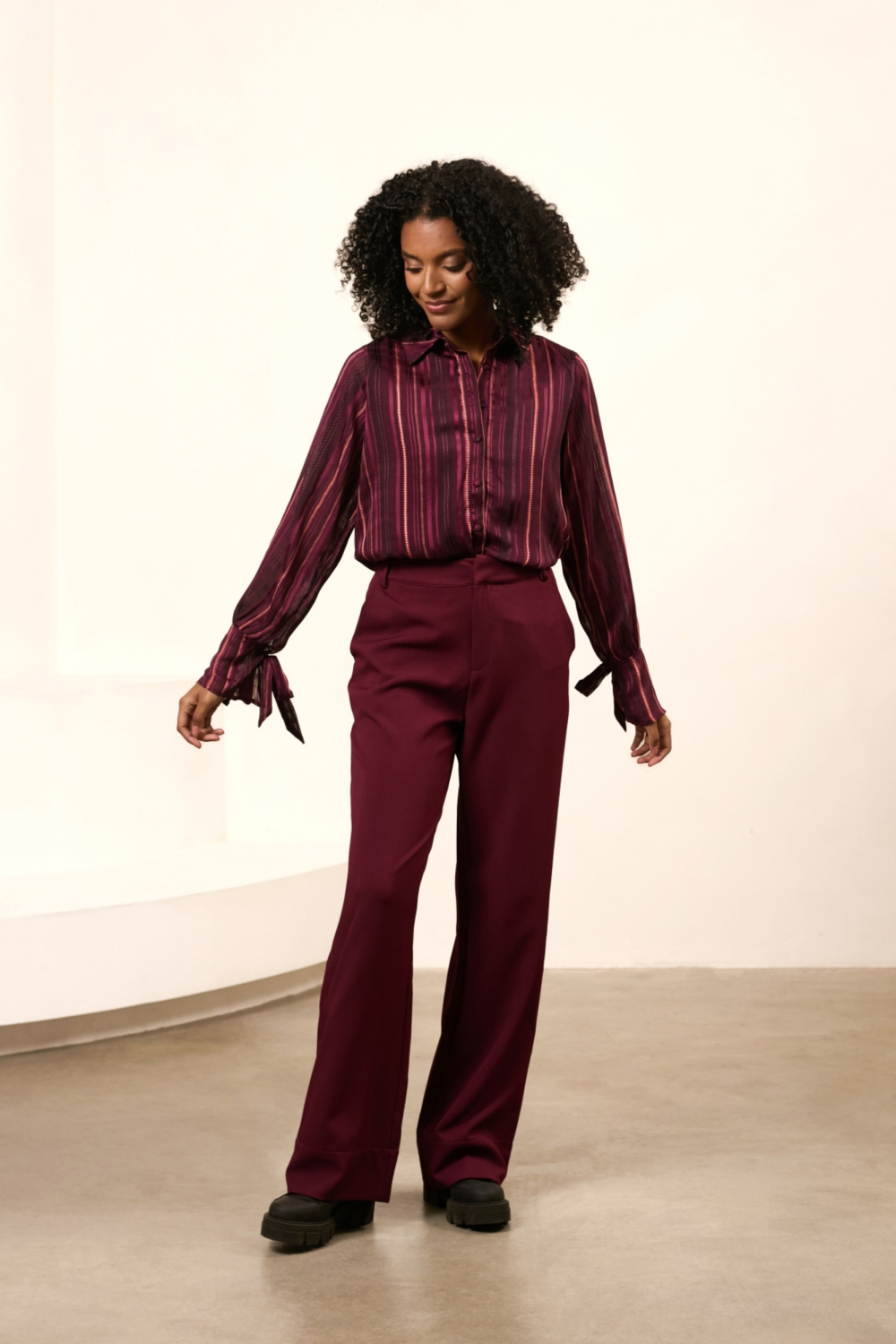 Deze elegante damesblouse van Lofty Manner is een veelzijdige keuze voor elke casual gelegenheid. De blouse kenmerkt zich door een uniek folk print patroon in diep bordeaux dat perfect samenvalt met het winterseizoen. Gemaakt van 100% polyester, biedt het een comfortabele en lichte draagervaring. De regular fit pasvorm zorgt voor een flatterende look, terwijl de knoopsluiting en puntkraag een klassieke uitstraling geven. Opvallend zijn de lange mouwen met verrassende strikdetails, die een speelse twist aan het geheel geven.