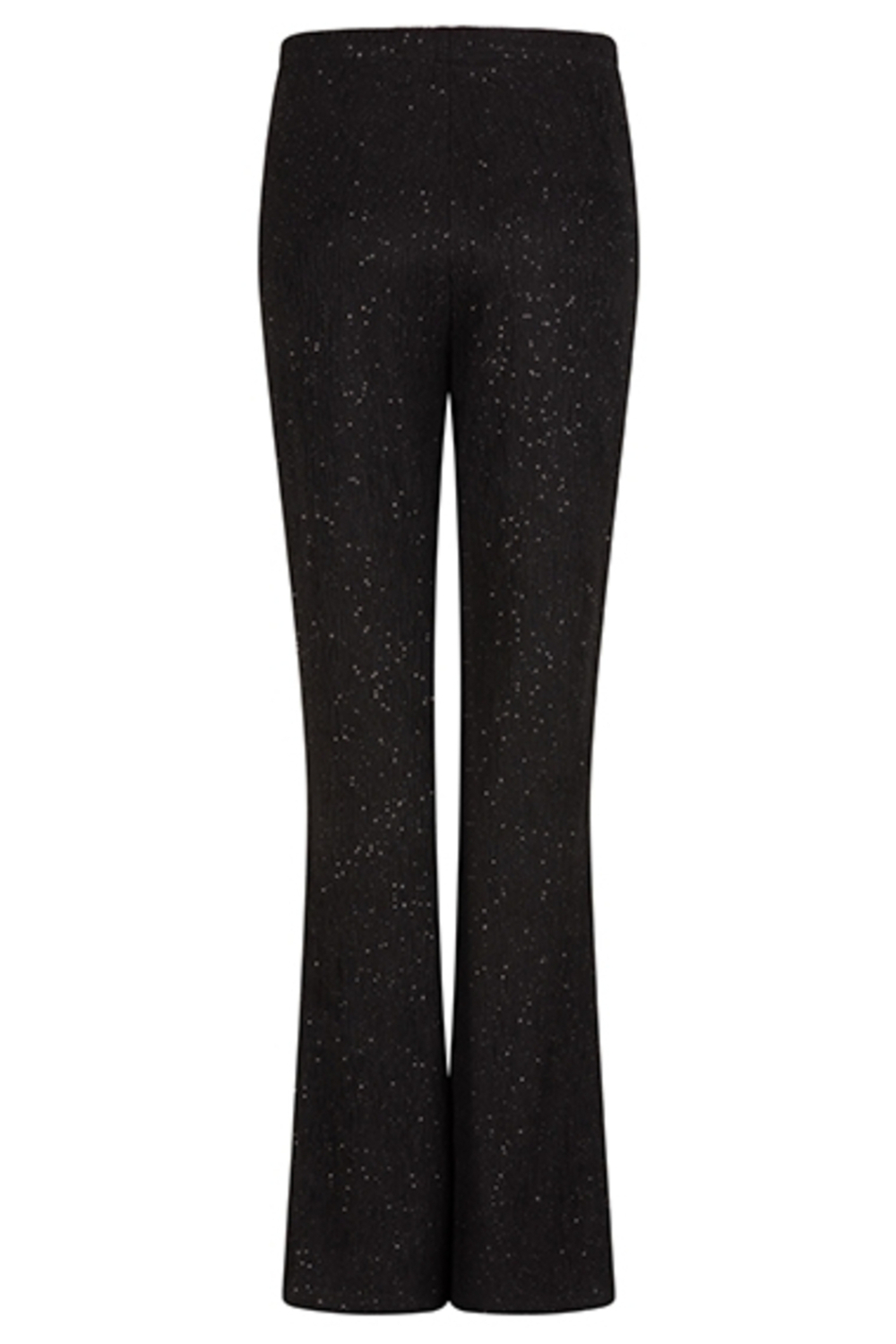 Deze elegante zwarte broek van Lofty Manner valt op door de subtiele glitters die het een chique uitstraling geven. De flared pasvorm en de high waist taille zorgen voor een stijlvolle en comfortabele fit, ideaal voor feestelijke gelegenheden. Gemaakt van een mix van polyester en elastan, biedt deze broek een zachte en rekbare stof die fijn aanvoelt en je moeiteloos door de avond begeleidt. Het ontwerp met elastische boord maakt hem gemakkelijk te dragen, zonder het comfort in te leveren. Met zijn glinsterende patroon is deze broek een perfecte match voor een winterse party of een avondje uit. Combineer hem met een elegante top en hakken voor een complete look. De normale lengte en subtiele flair geven je outfit een speelse en vrouwelijke touch. Of je nu een speciale gelegenheid hebt of gewoon zin hebt in iets speciaals, deze broek is klaar om je stralend te laten voelen.