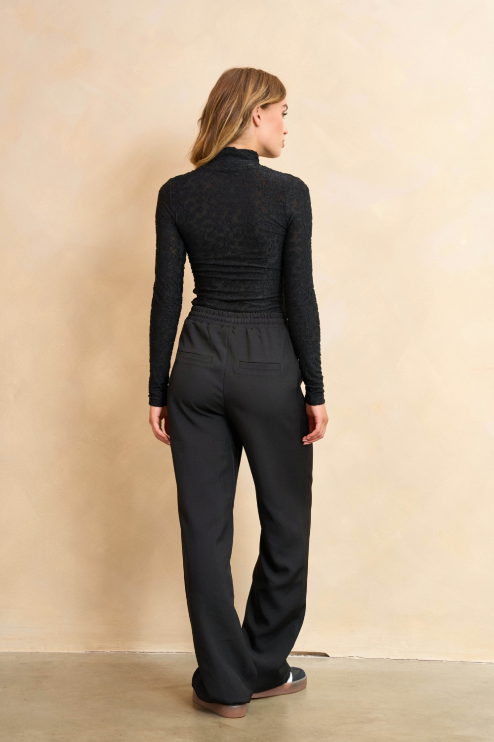 Dit elegante zwarte T-shirt van Lofty Manner is een veelzijdige keuze voor jouw wintergarderobe. De regular fit en de high neck creëren een modieuze en comfortabele look die perfect is voor allerlei gelegenheden. Het subtiele gestructureerde patroon voegt een vleugje verfijning toe, terwijl het materiaal – een mix van 95% polyester en 5% elastan – zorgt voor een fijne pasvorm en bewegingsvrijheid. Ideaal voor casual settings, kan dit T-shirt eenvoudig gecombineerd worden met een pantalon voor een verzorgde uitstraling. De lange mouwen en de normale lengte maken het een uitstekende keuze voor koudere dagen. Of je nu een dag op kantoor doorbrengt of een avondje uit gaat, met dit T-shirt ben je altijd stijlvol en comfortabel gekleed. Laat deze subtiele blikvanger je nieuwe favoriet worden.