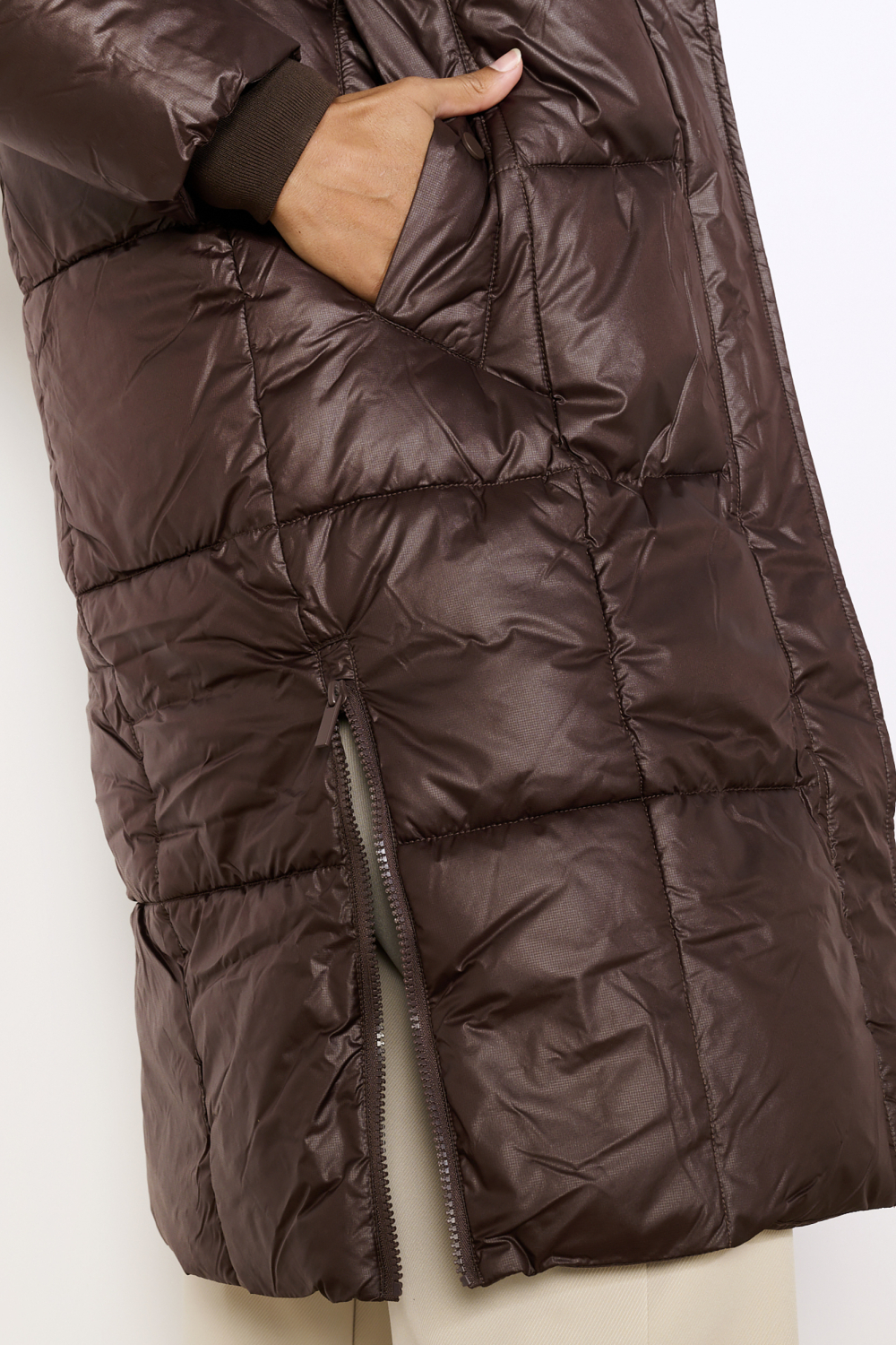 De LolaLiza jas in de warme tint 3720 BROWN DARK CHOC is een elegante keuze voor de winter. Met zijn lange pasvorm houdt deze jas je heerlijk warm tijdens koude dagen. De gewatteerde polyester voering zorgt ervoor dat je comfortabel blijft, terwijl de regular fit voor bewegingsvrijheid zorgt. De jas is voorzien van een capuchon die extra bescherming biedt tegen wind en regen. De combinatie van knoop- en ritssluiting geeft een modieuze touch en verzekert je van een aangesloten gevoel.