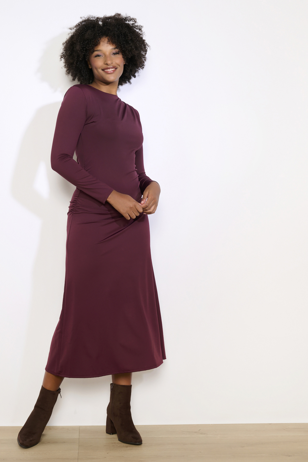 Deze casual jurk van LolaLiza is een stijlvolle en veelzijdige toevoeging aan je wintergarderobe. Gemaakt van een comfortabele mix van 80% polyester en 20% elastaan, zorgt de stof voor een zachte en aansluitende pasvorm zonder beperkt te voelen. De jurk heeft een elegante ronde halslijn en lange mouwen, wat perfect is voor de koudere maanden. Met zijn rijke bordeauxrode kleur is deze jurk een uitstekende keuze voor zowel informele als meer geklede gelegenheden. De 7/8 lengte geeft een moderne twist aan het klassieke silhouet, en maakt het mogelijk om te combineren met zowel enkellaarsjes als hoge laarzen. Of je nu een wandeling maakt in het stadspark of geniet van een informeel diner, deze jurk biedt de juiste balans tussen comfort en stijl. Voeg hem toe aan je collectie voor een moeiteloos elegante look die geschikt is voor elke winterdag. Meer informatie: De totale lengte is 118 cm bij maat 36.