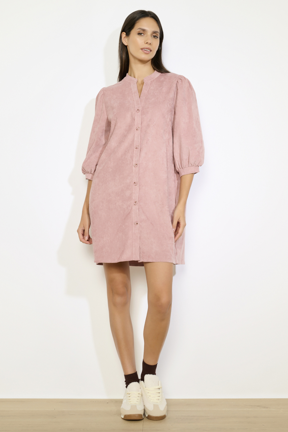 Deze casual jurk van LolaLiza in de kleur Cosmetic Pink is een perfecte toevoeging aan je herfstgarderobe. Het ribpatroon geeft de jurk een subtiele structuur en maakt het een veelzijdige keuze voor diverse gelegenheden. Met een comfortabele regular fit en een knoopsluiting aan de voorkant biedt deze jurk niet alleen stijl, maar ook praktisch gemak. De elegante V-hals en de 3/4 mouwen geven een moderne touch die zowel chic als nonchalant overkomt. Gemaakt van 97% polyester en 3% elastaan, garandeert de stof een aangename draagervaring. De normale lengte en het luchtige design maken deze jurk ideaal voor een dagje uit of een informele meeting. De stijlvolle pasvorm laat zich moeiteloos combineren met zowel sneakers als enkellaarsjes. Met deze jurk creëer je makkelijk een stijlvolle look die je de hele dag kunt dragen, of je nu in de stad loopt of een gezellige lunch met vrienden hebt.