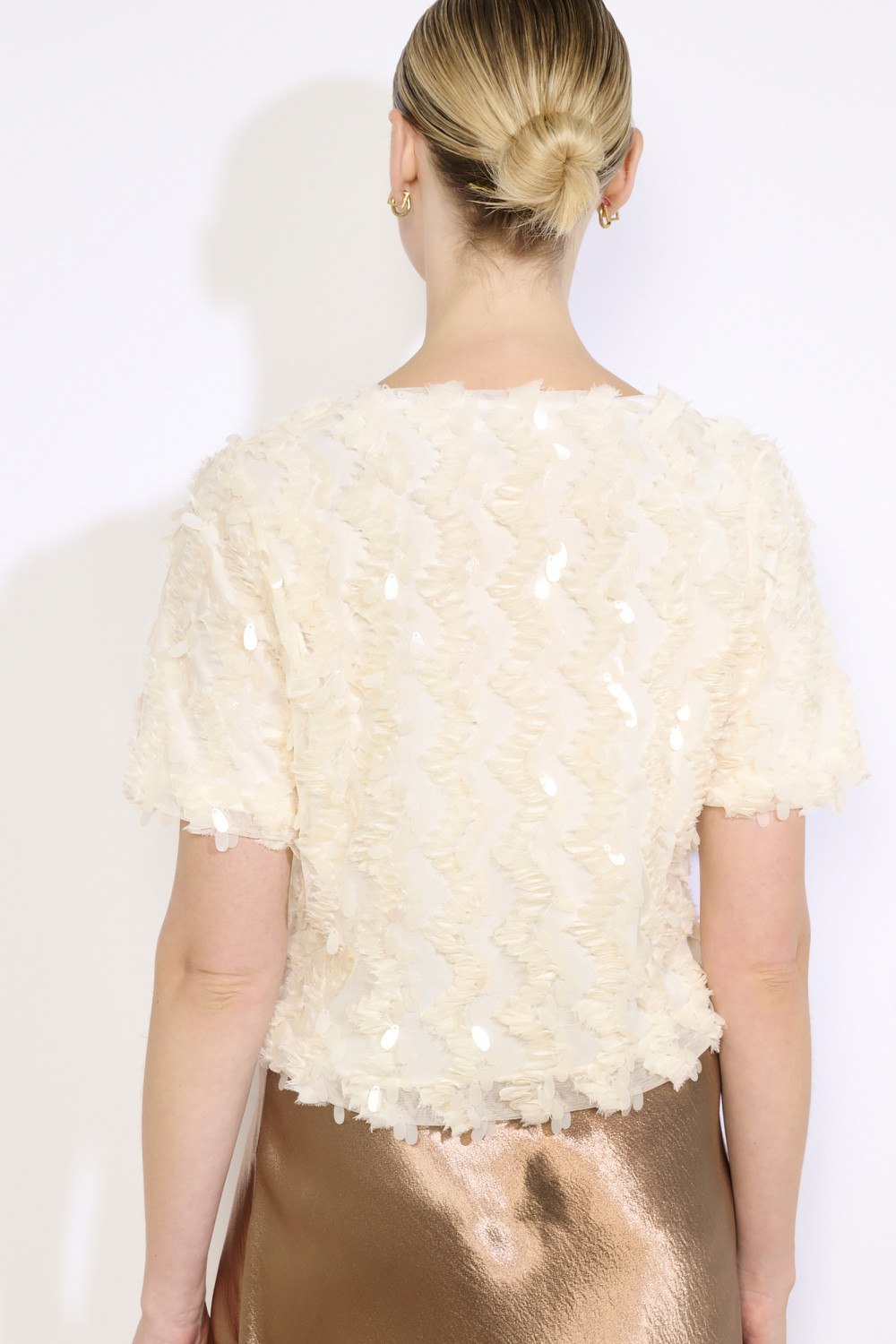 Dit elegante dames T-shirt van LolaLiza in de kleur Vanilla White biedt een perfecte mix van stijl en comfort. Gemaakt van 100% polyester, is het een fijne keuze voor de winter. De prachtige pailletten zorgen voor een subtiel glinsterende afwerking, wat het shirt een unieke uitstraling geeft. Met een regular fit en korte mouwen, biedt het voldoende bewegingsvrijheid voor dagelijks gebruik. De ronde hals voegt een klassieke touch toe, waardoor het veelzijdig te combineren is. Of je nu een feestelijke uitstraling zoekt voor de feestdagen of een comfortabele outfit voor een avond uit, dit T-shirt past in beide situaties. De normale lengte maakt het gemakkelijk te dragen met zowel jeans als een elegante rok. De voering van polyester zorgt voor extra comfort zonder in te boeten op stijl. Met zijn opvallende details en casual stijl is dit artikel een geweldige aanvulling op je wintergarderobe.