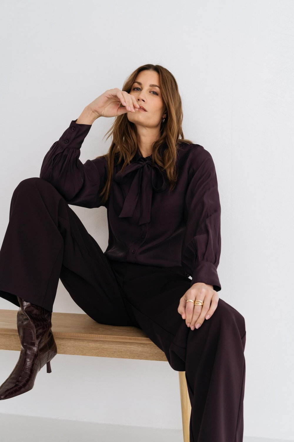 Deze elegante blouse van Maicazz is een verfijnde keuze voor elke modebewuste vrouw. De PLUMP kleur gecombineerd met een subtiele glans voegt een vleugje luxe toe aan deze winterse must-have. Met een regular fit pasvorm en lange mouwen biedt de blouse comfort en stijl, perfect voor dagelijks gebruik. De puntkraag en knoopsluiting geven het een klassieke touch, terwijl de strik bij de kraag een speels detail toevoegt.