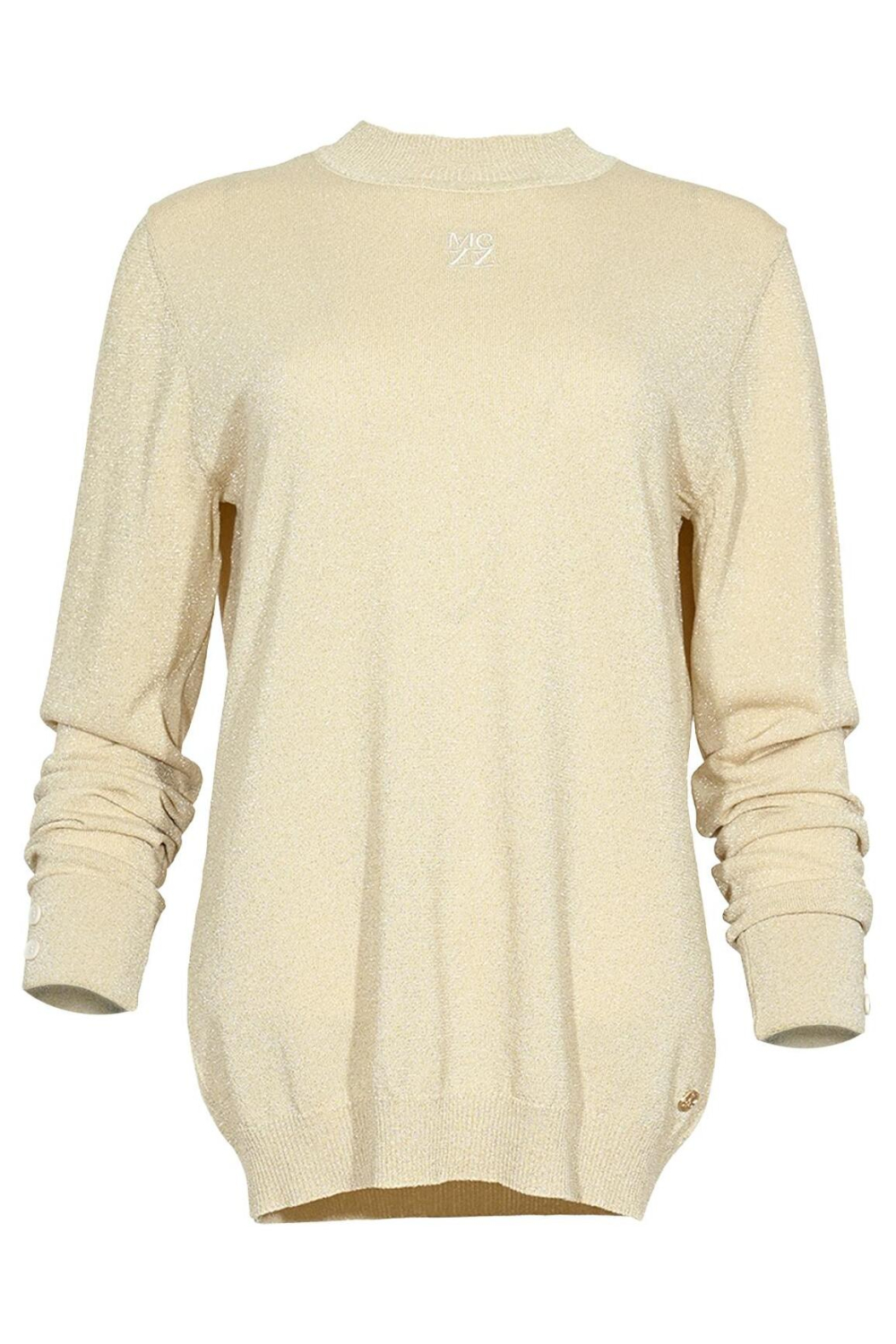 Met deze stijlvolle damestrui van Maicazz voeg je een vleugje glamour toe aan je wintergarderobe. Het regular fit ontwerp biedt een comfortabele pasvorm en de lange mouwen zorgen voor extra warmte tijdens de koudere dagen. De trui heeft een fraaie ronde hals en is gemaakt van hoogwaardig knitwear materiaal, wat ervoor zorgt dat de stof zacht aanvoelt op de huid. De opvallende glitters in de stof geven de trui een unieke uitstraling, perfect voor zowel casual als feestelijke gelegenheden.