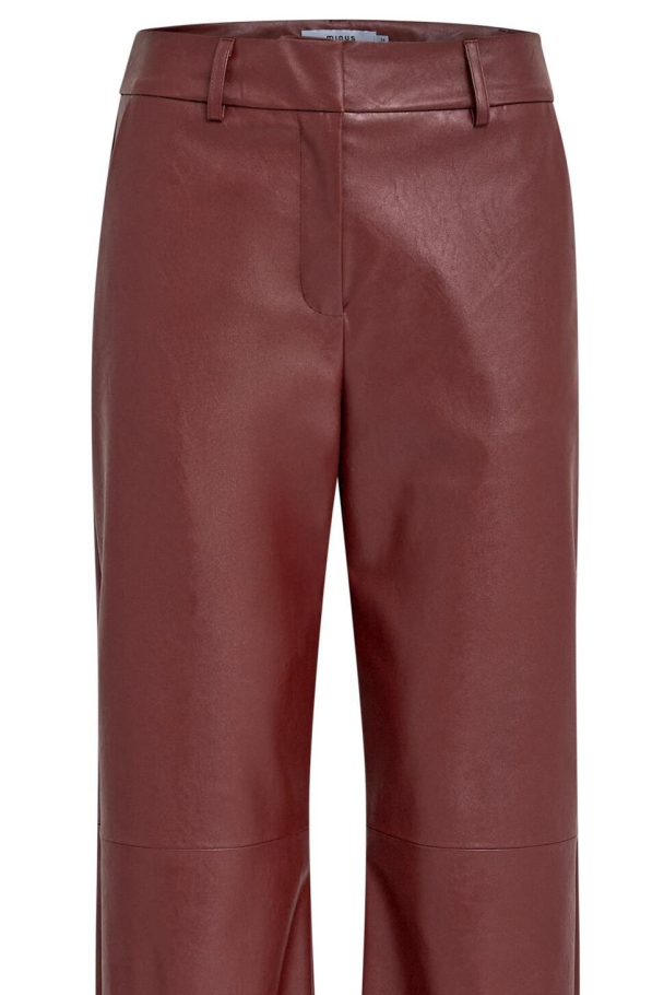 Deze stijlvolle wijde broek van Minus is een eigentijdse aanvulling voor je wintergarderobe. Gemaakt van 100% polyurethaan, biedt de broek een imitatielederen uitstraling die zowel duurzaam als trendy is. De wide leg pasvorm zorgt voor een comfortabele en modieuze look, ideaal voor een casual dagje uit of een ontspannen avondje thuis. De knoop- en ritssluiting aan de voorkant geven de broek een nette afwerking, terwijl de regular waist zorgt voor een flatterende pasvorm. Met zijn rijke bruine kleur en normale lengte past deze broek gemakkelijk bij diverse stijlen. Draag hem met een simpele top voor een alledaagse outfit, of combineer met een stijlvolle blouse voor wat meer flair. De praktische steekzakken voegen een functioneel element toe, perfect voor het gemak van dagelijks gebruik. Of je hem nu casual draagt met sneakers of netter met hakken, deze Minus broek is een veelzijdige keuze voor elk moment.