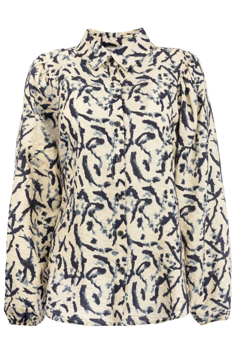 Deze stijlvolle vintage indigo blouse van NED is een prachtige toevoeging aan je dagelijkse garderobe. Met zijn grafisch patroon en puntkraag combineert deze damesblouse moeiteloos een moderne uitstraling met een vleugje speelsheid. Gemaakt van een zachte mix van 85% viscose en 15% polyamide, voelt de stof heerlijk comfortabel aan. De lange mouwen en de knoopsluiting maken het ontwerp compleet, wat zorgt voor een casual maar toch verfijnde look. Of je nu een dag op kantoor doorbrengt of een ontspannen lunch hebt met vrienden, deze blouse is een veelzijdige keuze. Hij laat zich gemakkelijk combineren met een nette broek voor een subtiel chique uitstraling of met een casual jeans voor een lichtere look. Dankzij de normale lengte biedt de blouse je de vrijheid om hem naar wens te stylen. Met zijn verfijnde kleur en patroon is deze blouse een subtiele blikvanger, ideaal voor diverse gelegenheden in elk seizoen.