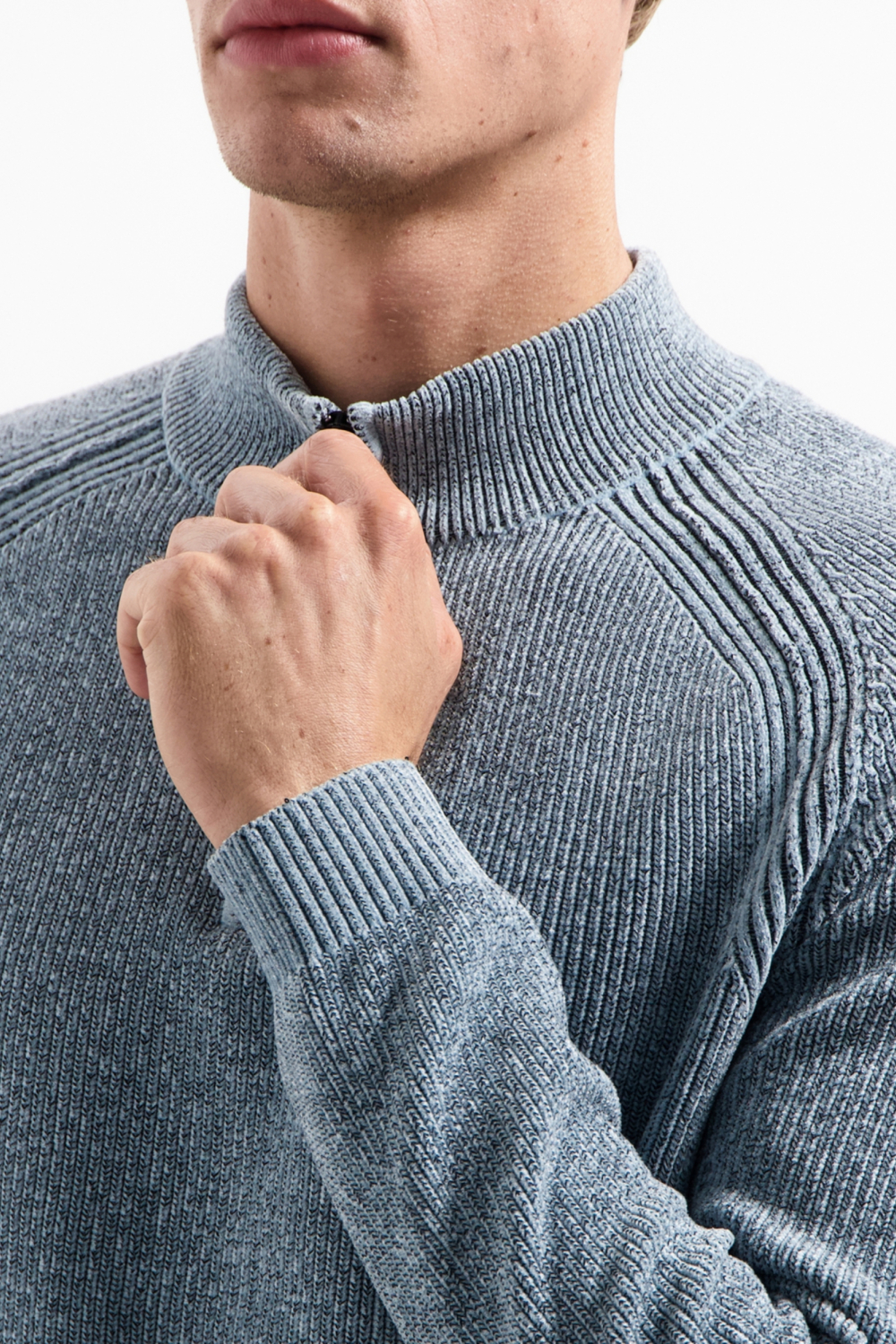 Deze stijlvolle trui van NO-EXCESS in de kleur Dusty Blue is de perfecte toevoeging aan je wintergarderobe. De regular fit is niet alleen comfortabel, maar accentueert ook een casual en toch nette uitstraling. Dankzij de mix van 63% polyester en 37% katoen, biedt de stof zowel zachtheid als duurzaamheid. De trui heeft een high neck die je uitstekend kunt sluiten met de rits, wat het draagcomfort aanzienlijk verhoogt tijdens koude dagen. De chenille patroon geeft de trui een subtiele textuur en een luxe gevoel.