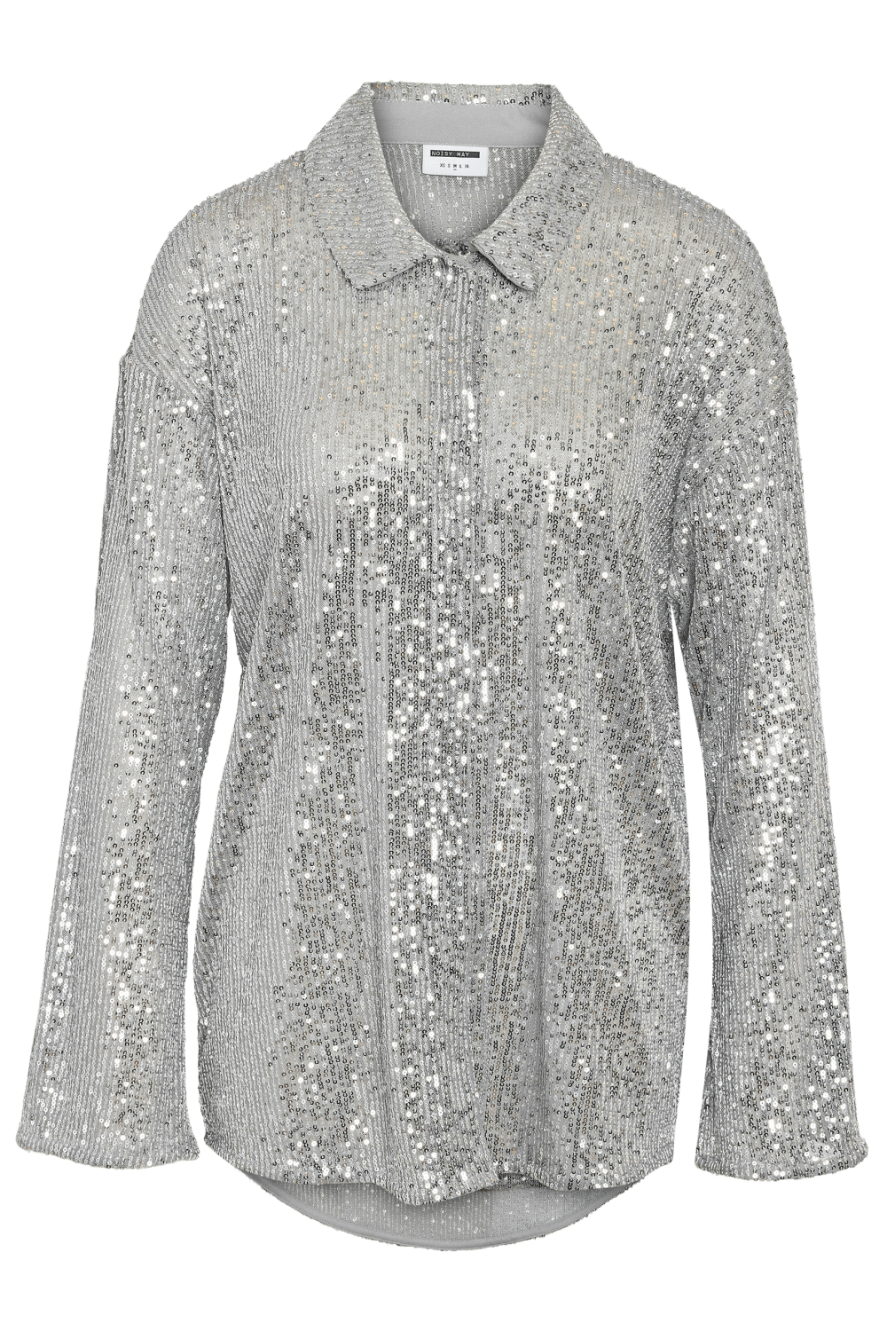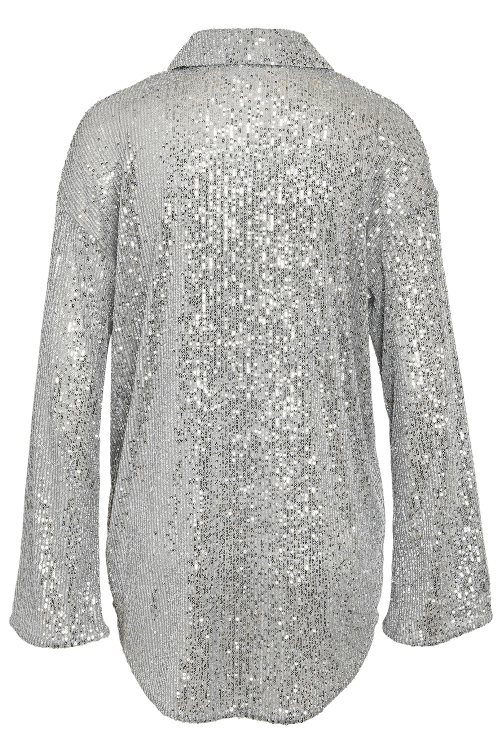Deze opvallende blouse van Noisy may wordt gekenmerkt door zijn sprankelende ontwerp, perfect voor feestelijke gelegenheden. De blouse is zilverkleurig en volledig bedekt met pailletten, wat zorgt voor een glanzende en levendige uitstraling. De drukknoopsluiting en de klassieke puntkraag geven een subtiele verfijning aan dit opvallende stuk. De regular fit en de lange mouwen maken het tot een comfortabele keuze voor een avondje uit of een speciale gelegenheid in de wintermaanden.