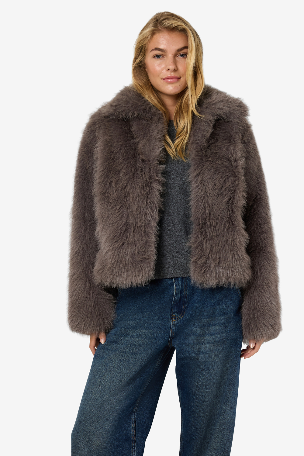 De Noisy may damesjas in Charcoal Gray is een elegante toevoeging voor je wintergarderobe. Gemaakt van 100% polyester, biedt deze jas een comfortabele pasvorm met een luxueuze uitstraling dankzij het imitatiebont patroon. De korte lengte en het regular fit design zorgen ervoor dat je stijlvol voor de dag komt, terwijl de puntkraag een klassieke touch toevoegt. Met zijn haaksluiting houd je de kou op afstand zonder in te boeten aan mode.