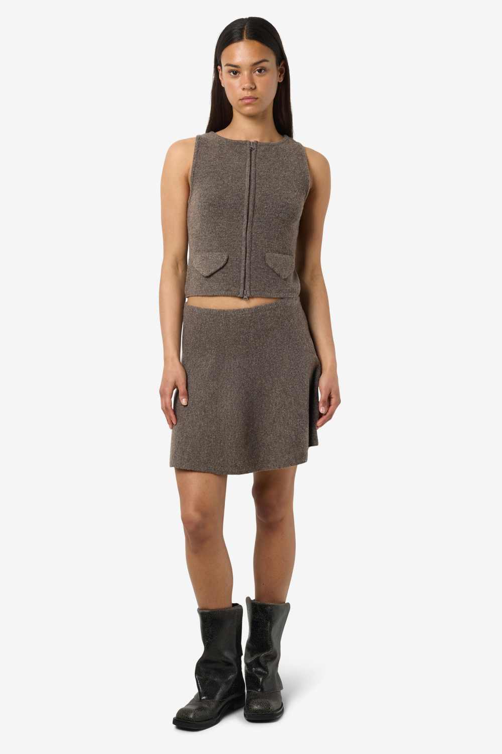 Deze modieuze korte rok van Noisy May, uitgevoerd in de kleur MOREL/MELANGE, is een perfecte aanvulling op je wintergarderobe. Het gemêleerde patroon geeft de rok een elegante uitstraling, terwijl de regular fit en elastische boord zorgen voor een comfortabele pasvorm. De knitwear stijl maakt deze rok ideaal voor koude dagen, waarbij je zowel stijlvol als warm gekleed bent. Het ontwerp combineert moeiteloos een chique uitstraling met praktisch comfort. Of je nu naar een informele bijeenkomst gaat of een dagje uit plant, deze rok biedt veelzijdige combinatiemogelijkheden. Draag hem met een aansluitende trui voor een harmonieus geheel of kies voor een casual blouse en stoere laarzen voor een meer nonchalante look. Door de eenvoudig te combineren kleur past deze Noisy May rok bij vrijwel elke outfit, waardoor je eindeloos kunt variëren. De subtiele details en fijne afwerking maken deze rok tot een tijdloze keuze voor elke vrouw die van moderne klassiekers houdt. Meer informatie: De totale lengte is 39 cm bij maat S.