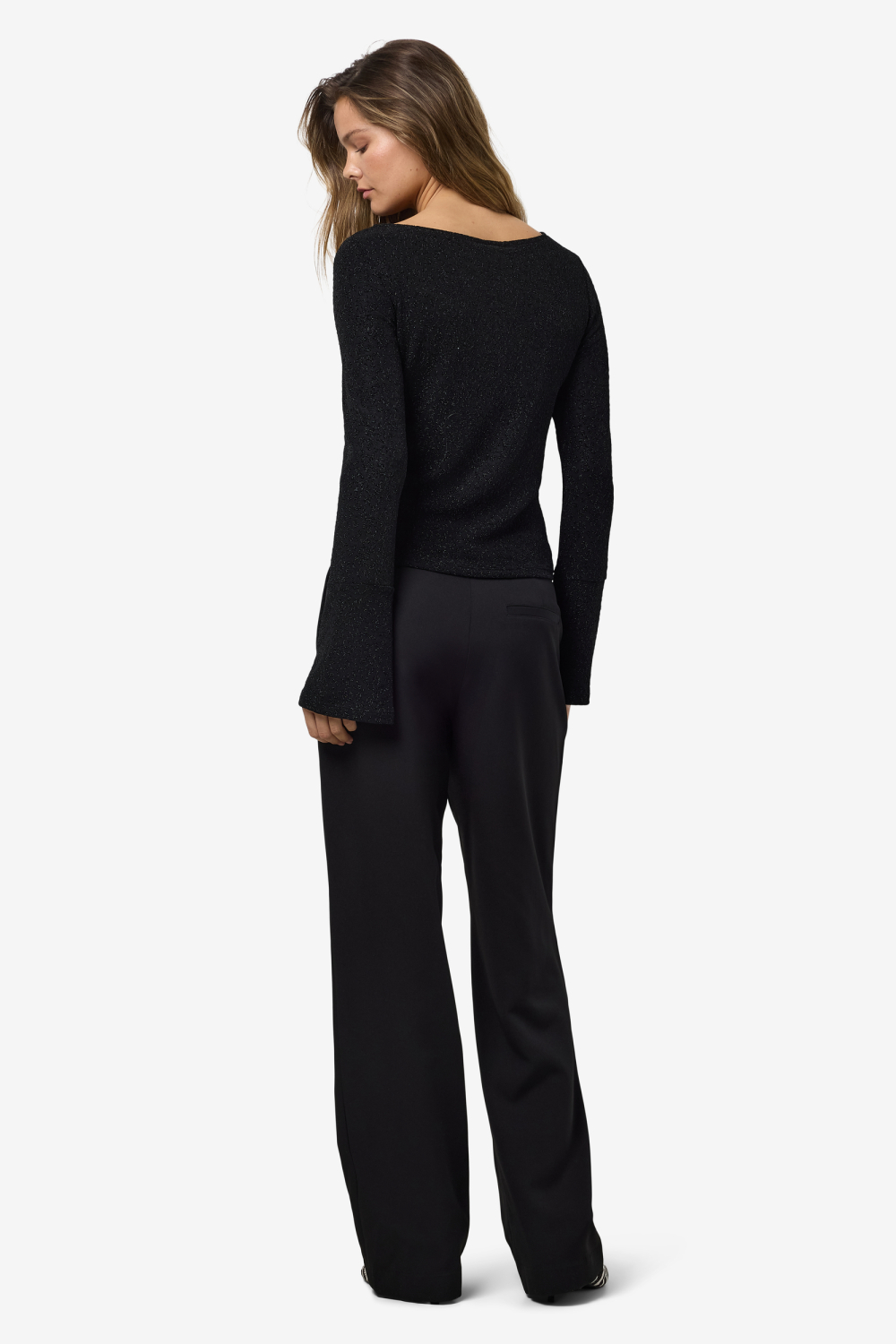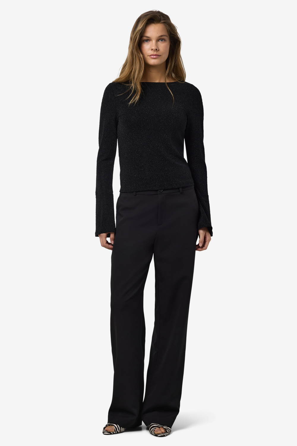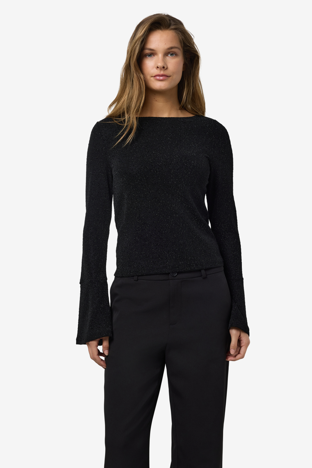Dit elegante zwarte T-shirt van Noisy may is de perfecte keuze voor jouw volgende feestje. Gemaakt van een blend van 70% polyamide, 25% metaalgaren en 5% elastan, biedt dit shirt een comfortabele en elastische pasvorm die mooi aansluit op het lichaam. De boothals en de lange mouwen geven het T-shirt een verfijnde uitstraling, terwijl het glitterpatroon zorgt voor een subtiele glans die perfect is voor een winterse avond. Deze combinatie maakt het een uitstekend kledingstuk voor een avond uit.