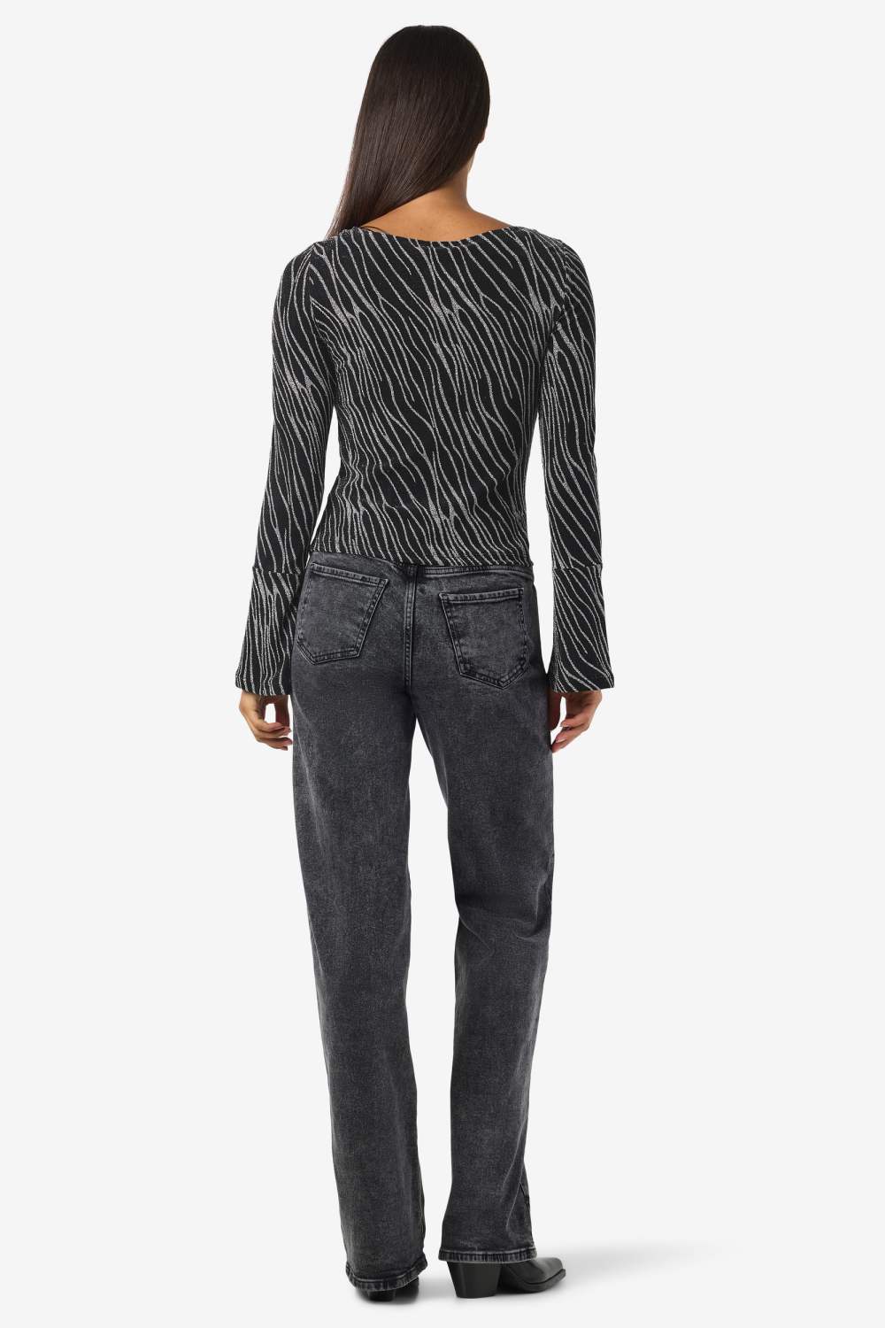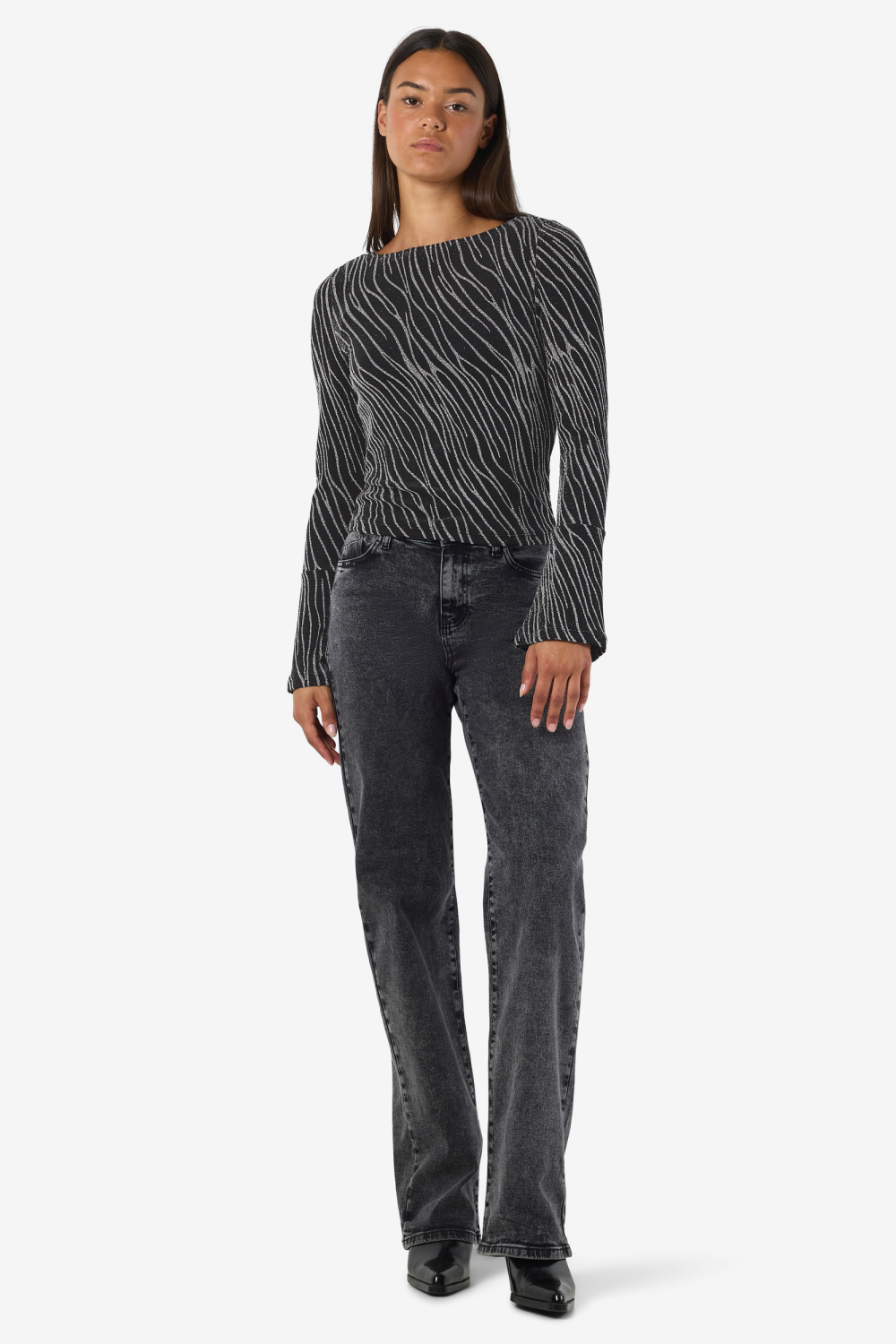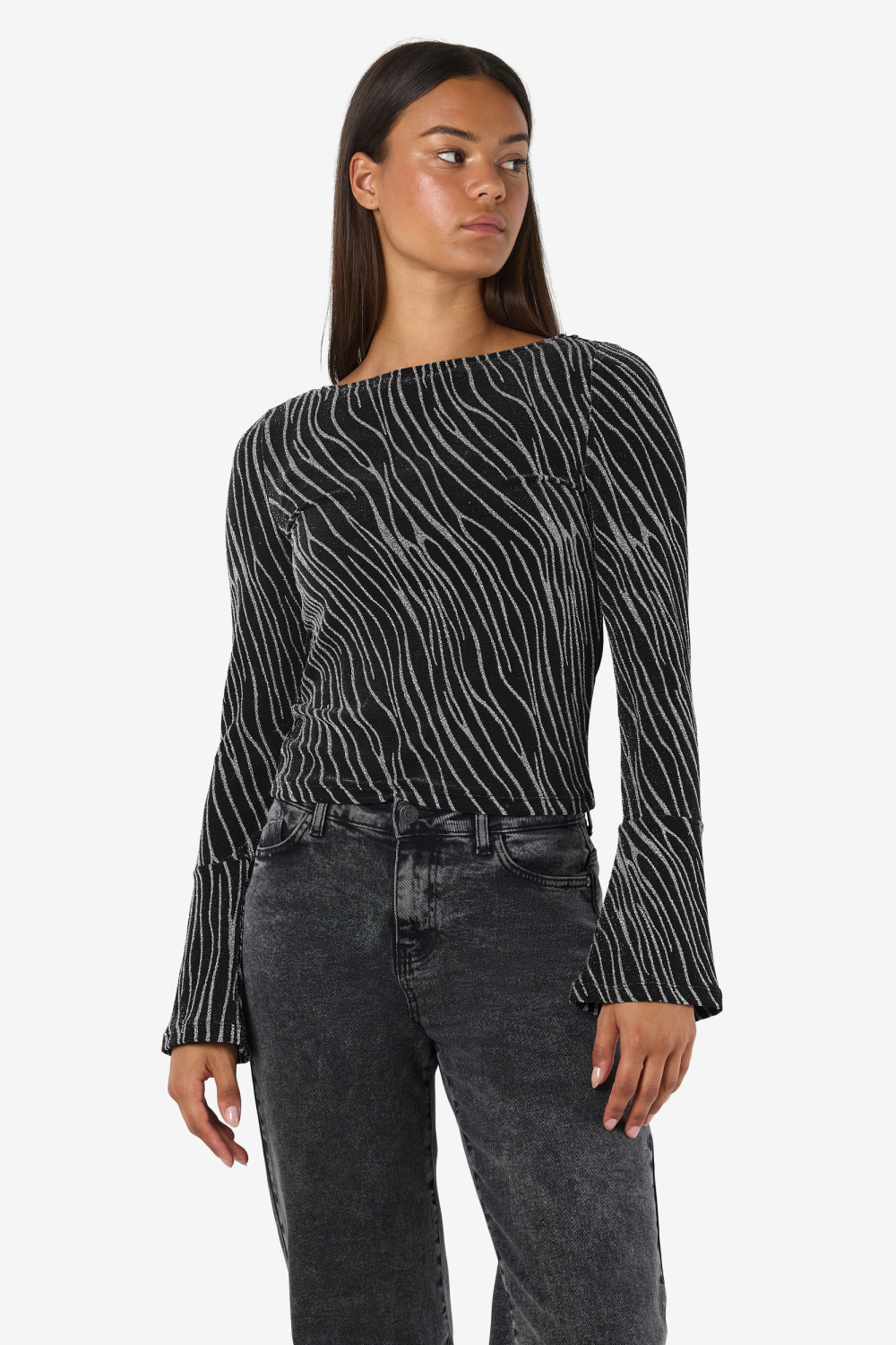 Dit opvallende T-shirt van Noisy may is de perfecte keuze voor de modebewuste vrouw die op zoek is naar een stijlvolle party look. Het T-shirt heeft een regular fit en is gemaakt van een unieke blend van 70% polyamide, 25% metaalgaren en 5% elastan. Deze combinatie zorgt niet alleen voor een comfortabele pasvorm, maar geeft ook een subtiel sprankelend effect dankzij het glitterpatroon. De boothals en de lange mouwen voegen een vleugje elegantie toe aan dit veelzijdige kledingstuk.