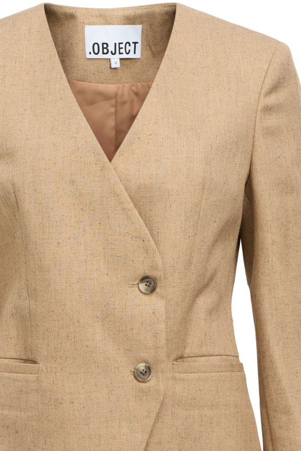 Deze elegante Tannin/Black melange blazer van Object is een stijlvolle aanvulling in je garderobe. Met zijn regular fit en klassieke V-hals biedt deze blazer een tijdloze look dat passend is voor zowel casual als zakelijke gelegenheden. Gemaakt van een hoogwaardige stofmix van 94% polyester en 6% linnen, voelt deze blazer comfortabel aan en heeft het een gemêleerd patroon dat zorgt voor een subtiele, verfijnde uitstraling.