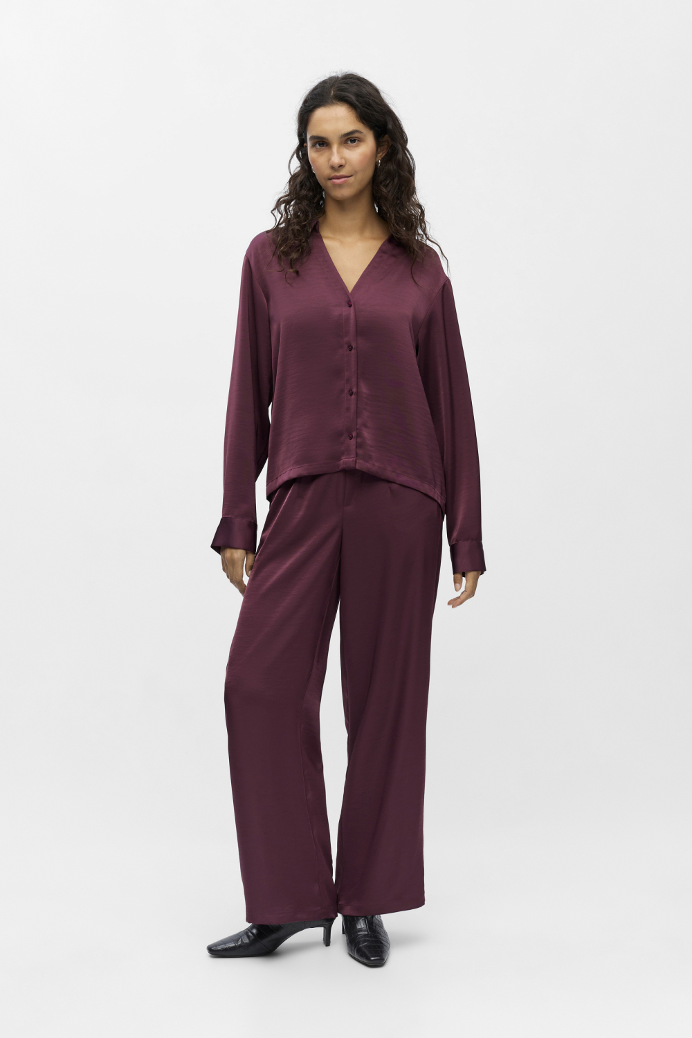 Deze elegante mauve wine blouse van Object is een veelzijdige aanvulling op je wintergarderobe. Gemaakt van 100% polyester, biedt het een subtiele glans die je outfit direct een chique uitstraling geeft. De regular fit pasvorm zorgt voor comfort zonder in te boeten op stijl, terwijl de knoopsluiting en V-hals het geheel een verfijnde look geven. Deze blouse is geschikt voor casual gelegenheden en kan makkelijk gecombineerd worden voor zowel een dag op kantoor als een ontspannen etentje. Het tijdloze design van deze lange mouw blouse maakt het eenvoudig om te dragen in uiteenlopende situaties. De diepe kleur en glanzende textuur passen goed bij zowel een nette broek als een casual jeans. Dankzij de normale lengte valt de blouse mooi op elk postuur. Of je nu gezellig gaat borrelen met vrienden of gewoon een dagje thuis doorbrengt, deze Object blouse zorgt ervoor dat je er stijlvol en zelfverzekerd uitziet.