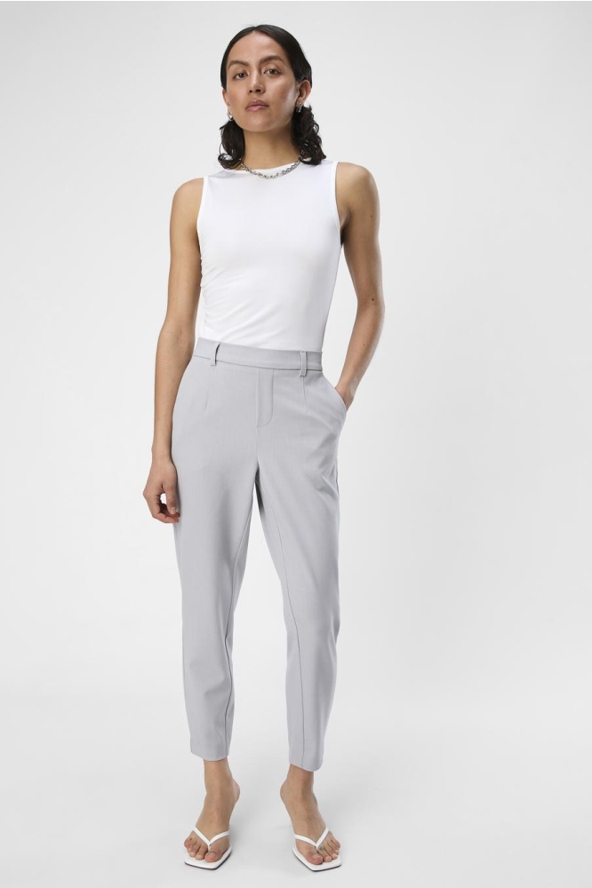Deze stijlvolle light grey melange broek van Object is een elegante aanvulling op je garderobe. De gemêleerde stof zorgt voor een uniek uiterlijk, terwijl de slim fit pasvorm een moderne en gestroomlijnde look biedt. Met de regular waist en elastische boord geniet je van optimaal draagcomfort. De broek is voorzien van handige steekzakken, ideaal voor dagelijks gebruik. Dit stuk is perfect voor zowel een ontspannen dag als een casual ontmoeting, dankzij de veelzijdige stijl die naadloos bij verschillende outfits past. De tijdloze kleur van deze broek maakt het eenvoudig om te combineren met diverse tops en schoenen. Of je nu kiest voor een nette blouse of een relaxed T-shirt, met deze broek ben je altijd stijlvol en comfortabel gekleed. De normale lengte en het subtiele patroon geven een verfijnde uitstraling, waardoor de broek geschikt is voor meerdere gelegenheden. Of je nu naar kantoor gaat of lekker de stad in gaat, deze broek van Object is een betrouwbare keuze voor elke dag. Met oog voor detail en kwaliteit, vormt dit kledingstuk een waardevolle toevoeging aan je collectie.