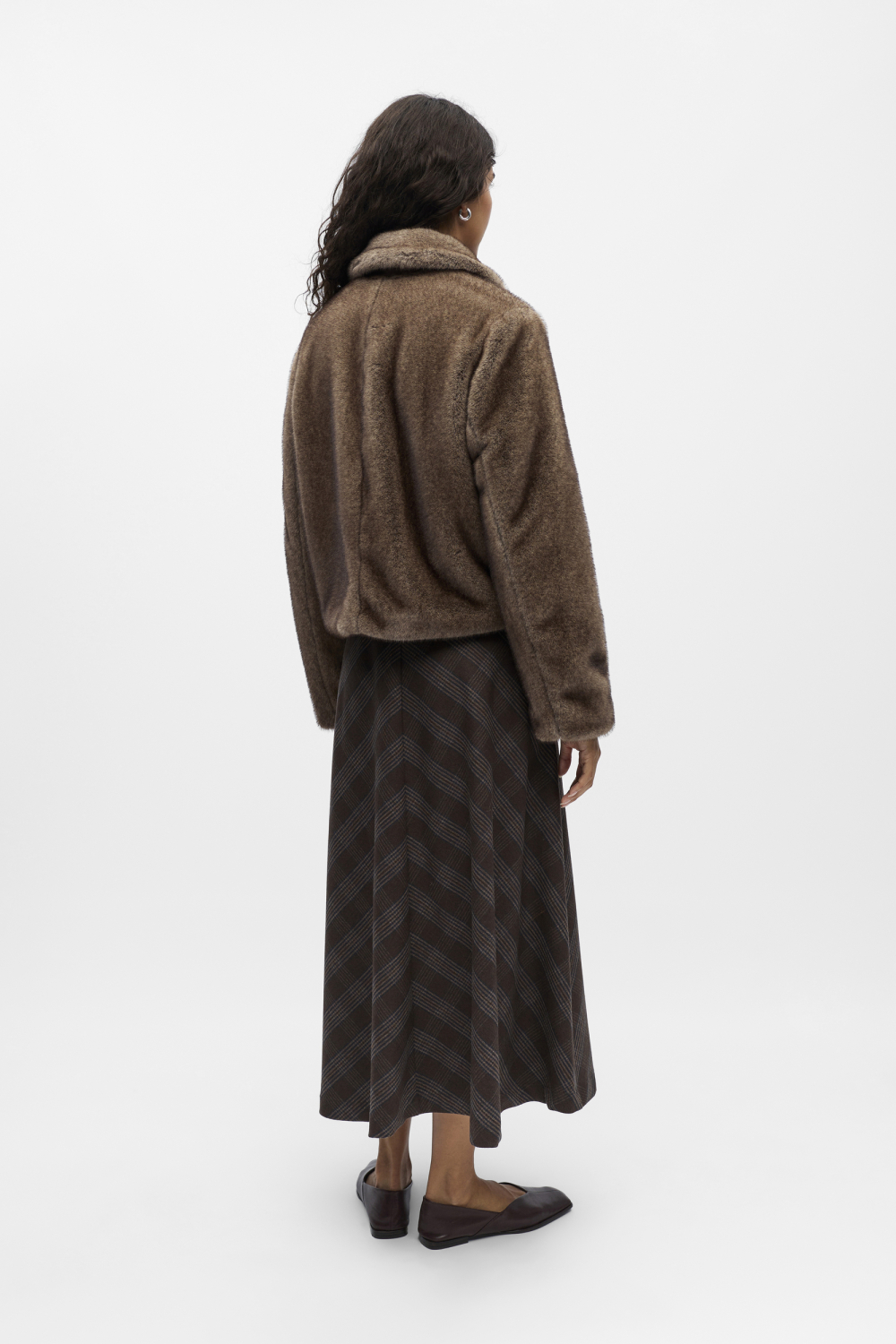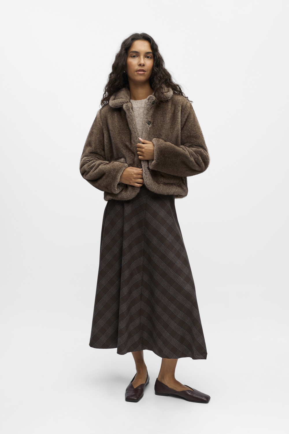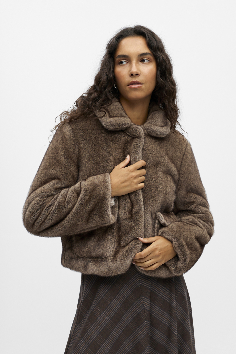 Deze casual damesjas van Object combineert stijl en comfort in een prachtige winterlook. De jas is gemaakt van 100% polyester en voorzien van een warme polyester voering, waardoor hij ideaal is voor de koudere maanden. De korte pasvorm met lange mouw en drukknoopsluiting geeft je een modieuze uitstraling, terwijl de puntkraag en klepzakken een speels element toevoegen. De jas in de kleur Morel heeft een prachtig imitatiebont patroon, wat zorgt voor een luxe uitstraling zonder compromissen op duurzaamheid.
