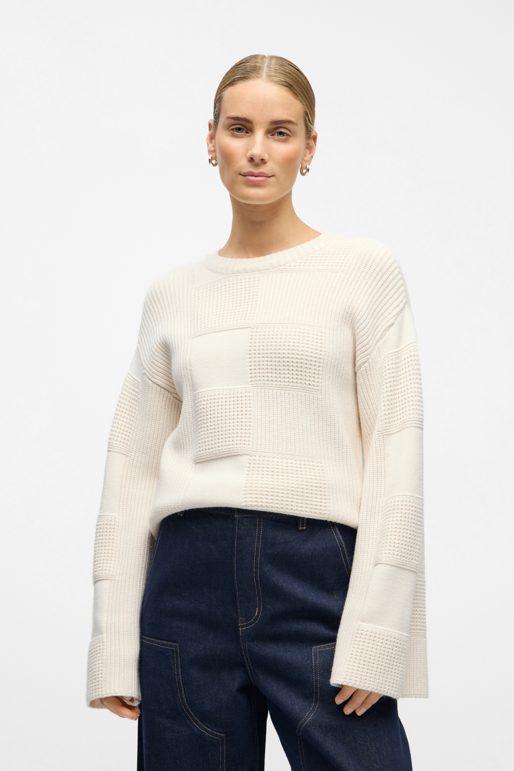 Deze stijlvolle witte trui van Object is de perfecte aanwinst voor jouw wintergarderobe. Gemaakt van een gebreide stof met een intrigerend structuurpatroon, zorgt deze trui voor een subtiele en toch opvallende look. De ronde halslijn en de lange mouwen bieden zowel comfort als warmte, ideaal voor de koudere dagen. Met een regular fit pasvorm sluit de trui goed aan voor een relaxte, maar nette uitstraling. De White Sand/Melange kleur geeft een moderne twist die makkelijk te combineren is met diverse kledingstukken, of je nu een dagje thuis bent of een casual afspraak buiten de deur hebt.