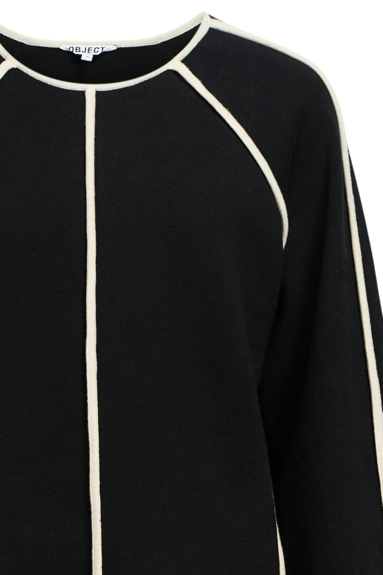Deze stijlvolle damestrui van Object, uitgevoerd in de kleuren Black/Sandshell, is een veelzijdige aanvulling voor je garderobe. De trui heeft een casual stijl en is gemaakt van 100% viscose, wat zorgt voor een zachte en comfortabele draagervaring. Met zijn regular fit en ronde hals vormt deze trui een tijdloze keuze, perfect voor de herfstseizoenen. De opvallende contrasterende biezen geven de trui een moderne, unieke uitstraling, terwijl de lange mouwen bijdragen aan extra warmte en comfort.