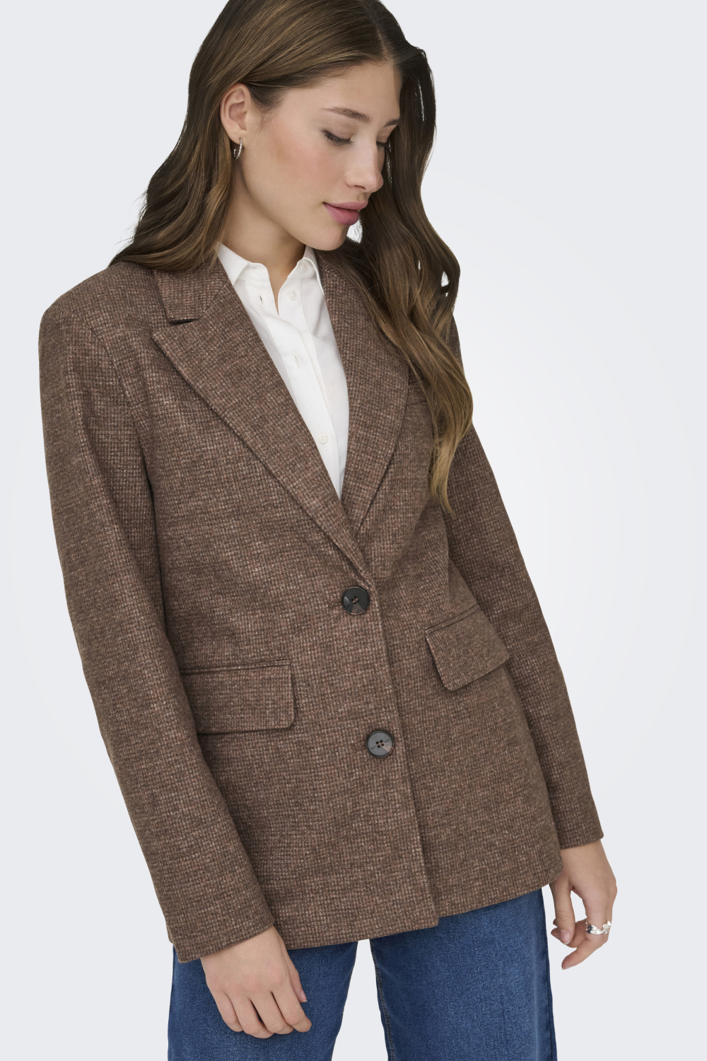 Deze geblokte blazer van Only is een veelzijdige aanwinst voor elke damesgarderobe. Met zijn regular fit en halflange snit biedt deze blazer een comfortabele pasvorm die ideaal is voor zowel casual als semi-formele gelegenheden. De klepzakken en de knoopsluiting voegen praktische details toe, terwijl de revers kraag een klassieke uitstraling biedt. De blazer is gemaakt van duurzaam materiaal met een polyester voering, wat zorgt voor een fijne draagervaring. Het bruine patroon maakt het makkelijk te combineren met verschillende outfits en stijlen. Of je nu naar kantoor gaat of een avondje uit plant, deze blazer van Only is de perfecte match. Hij is veelzijdig genoeg om te dragen met een nette pantalon en blouse, maar past ook uitstekend bij een spijkerbroek voor een meer casual look. Door het tijdloze ontwerp en het duurzame karakter biedt deze blazer een uitstekende balans tussen stijl en comfort. Voeg hem toe aan je collectie en geniet van de veelzijdigheid bij elke gelegenheid.