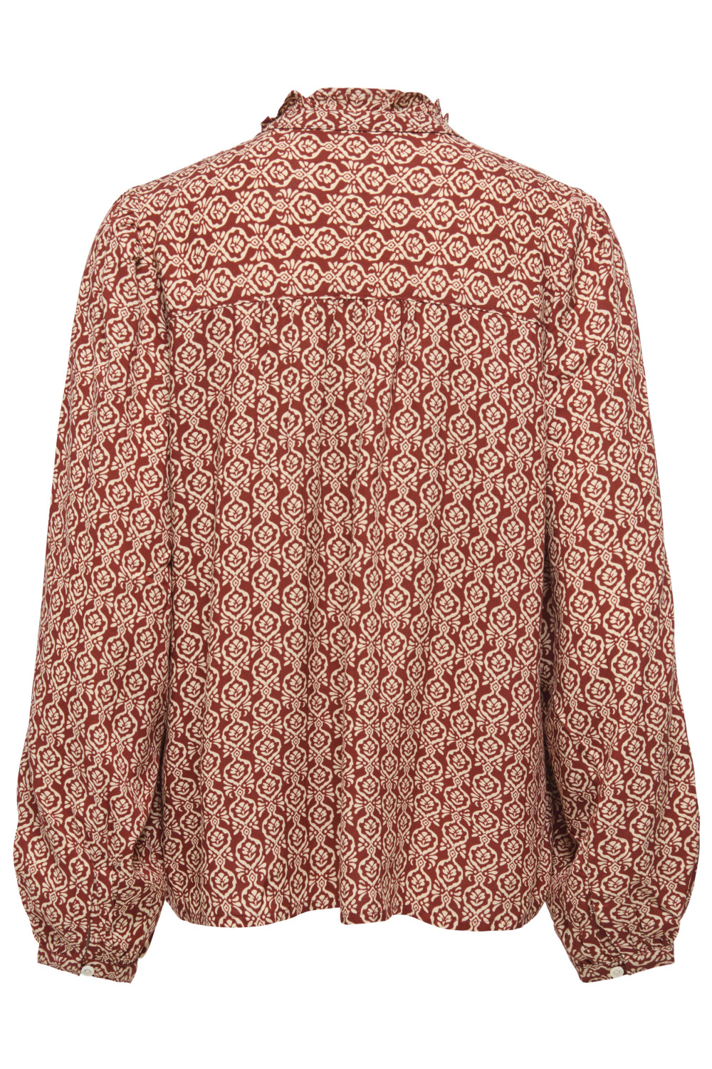Deze Only blouse, uitgevoerd in de stijlvolle kleur Burnt Henna, is een veelzijdige aanwinst voor je garderobe. Met een grafisch patroon dat je outfit net dat beetje extra geeft, is deze blouse perfect om elke dag te dragen. De blouse heeft een regular pasvorm, wat zorgt voor een comfortabele en ontspannen uitstraling. De V-hals en de knoopsluiting geven een klassieke touch aan dit eigentijdse kledingstuk, terwijl de lange mouwen je outfit net dat beetje extra stijl bieden. Gemaakt van 100% viscose, voelt de stof zijdezacht aan op de huid.