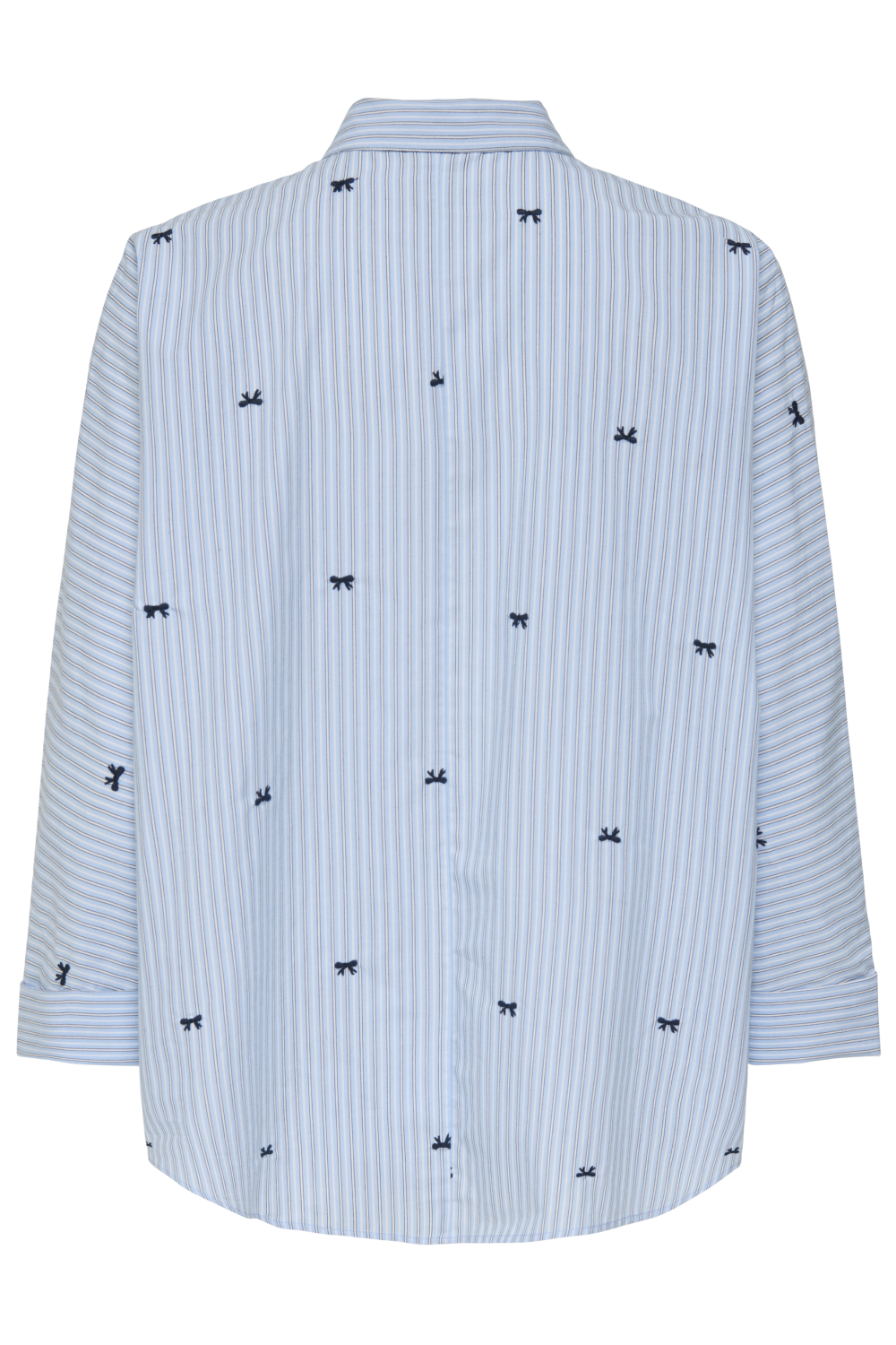 Deze casual blouse van Only is een stijlvolle toevoeging aan je herfstgarderobe. Gemaakt van 100% katoen, biedt het een comfortabele en ademende stof, ideaal voor dagelijks gebruik. De blouse heeft een regular fit pasvorm en een klassieke puntkraag, afgewerkt met een elegante knoopsluiting aan de voorkant. Het subtiele streepjespatroon aangevuld met kleine strikjes, geeft een speelse en tegelijk verfijnde uitstraling. Met zijn lange mouwen en normale lengte is deze blouse perfect om zowel los te dragen als in een broek of rok gestopt.