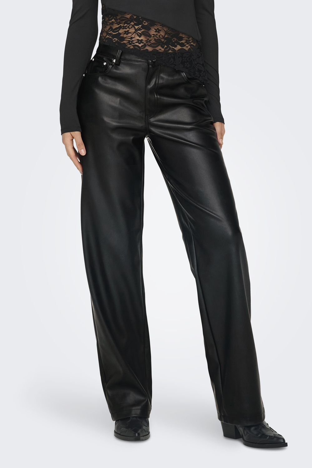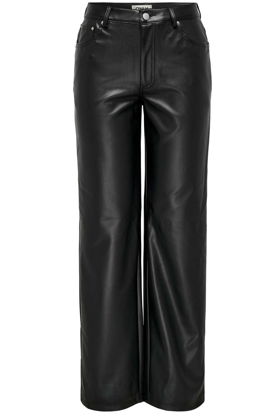 Deze stijlvolle zwarte damesbroek van Only is een perfecte toevoeging aan je herfstgarderobe. De straight pasvorm en het 5-pocket ontwerp zorgen voor een casual, maar toch elegante look. Gemaakt van 100% polyester met een imitatieleer patroon, biedt deze broek een moderne uitstraling die ideaal is voor verschillende gelegenheden. De high waist taille en knoop/rits sluiting zorgen voor een comfortabele en flatterende pasvorm die moeiteloos te combineren is met diverse tops.