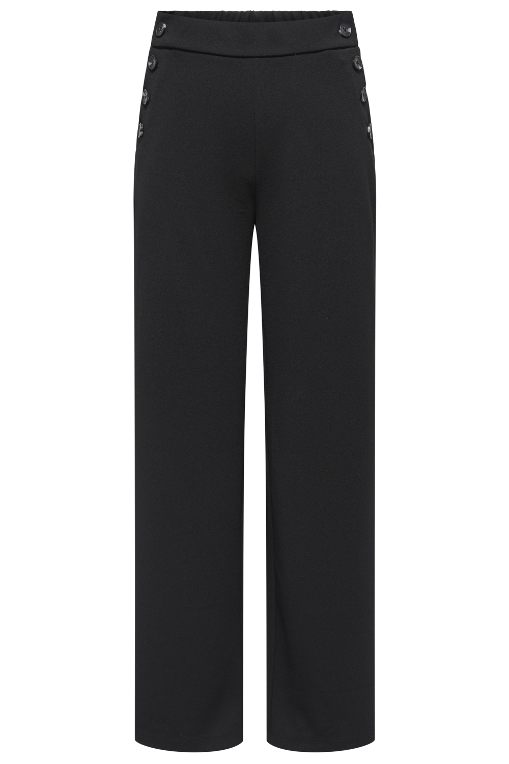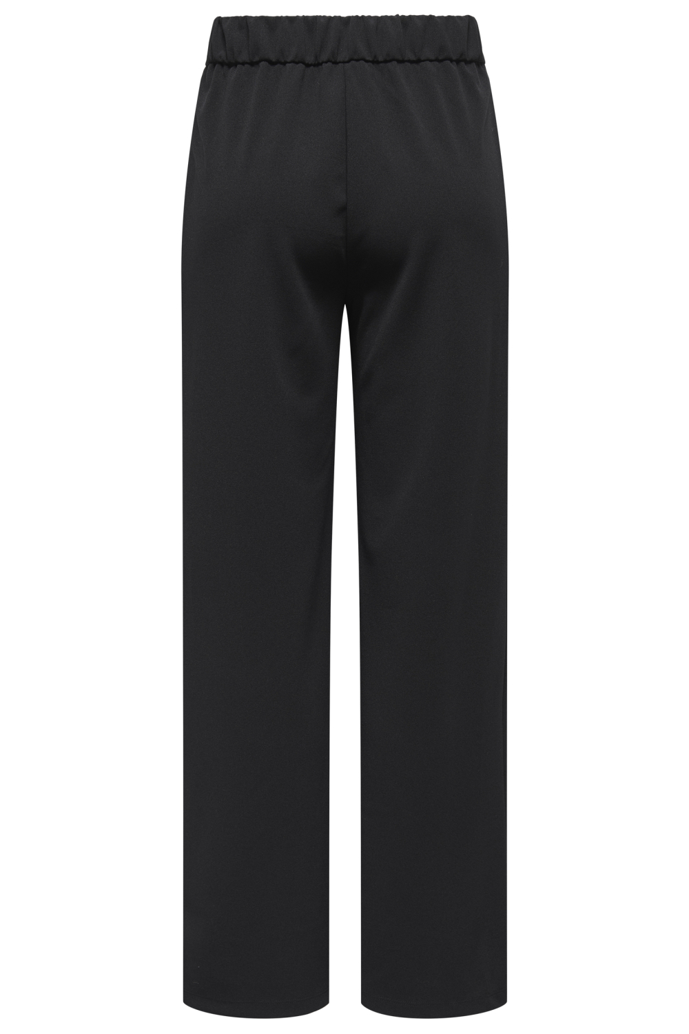 Deze zwarte Only broek combineert stijl en comfort met een regular fit pasvorm. De elastische boord zorgt voor een moeiteloze sluiting, terwijl de sierlijke hoornknopen aan de zijkanten een elegante touch toevoegen aan het eenvoudige ontwerp. Gemaakt van een mix van 95% polyester en 5% elastan biedt de stof de perfecte combinatie van stevigheid en flexibiliteit, waardoor je je de hele dag comfortabel voelt.