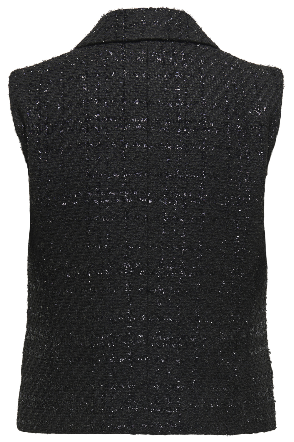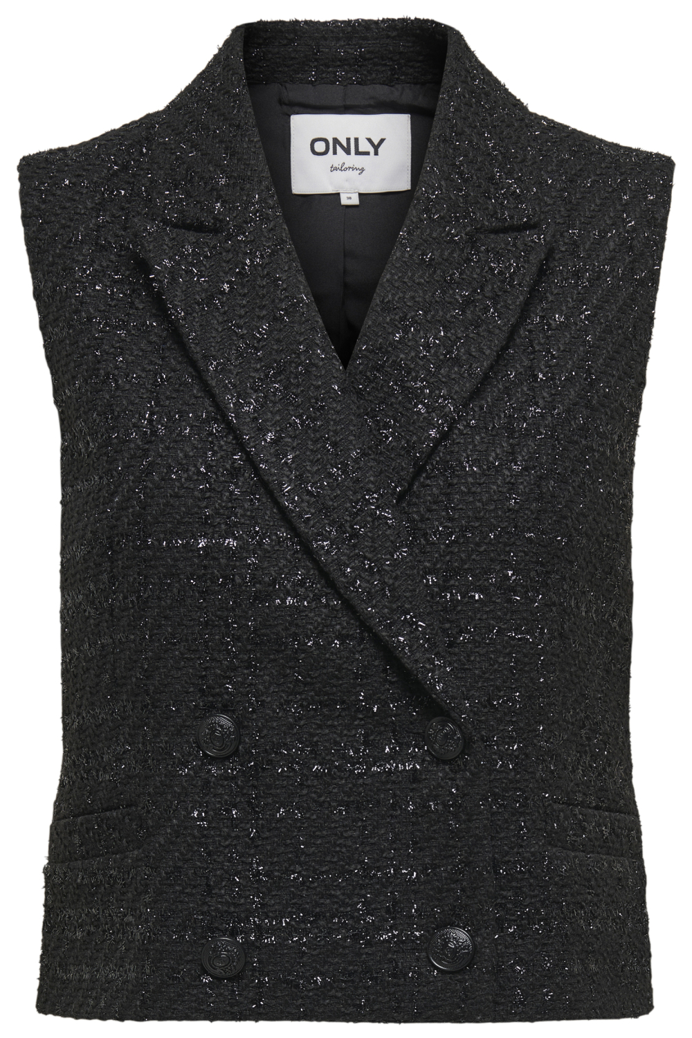 Dit elegante zwarte gilet van Only is een prachtige toevoeging aan je wintergarderobe. Gemaakt van 100% polyester, biedt het een comfortabel draagcomfort met een verfijnde uitstraling. De glanzende glitters en de revers kraag geven het gilet een bijzondere touch, waardoor het uitstekend geschikt is voor casual winterse gelegenheden. De knoopsluiting en de mouwloze afwerking maken het veelzijdig en praktisch voor verschillende laagjes combinaties. Of je nu een dagje de stad in gaat of een diner hebt met vrienden, dit gilet past perfect bij elke gelegenheid. Door de regular fit heeft het een ontspannen pasvorm, ideaal om over een warme trui of coltrui te dragen. De zwarte kleur zorgt ervoor dat het gilet makkelijk te combineren is met andere items in je garderobe. Geef je winterlook net dat beetje extra flair met dit stijlvolle Only gilet.