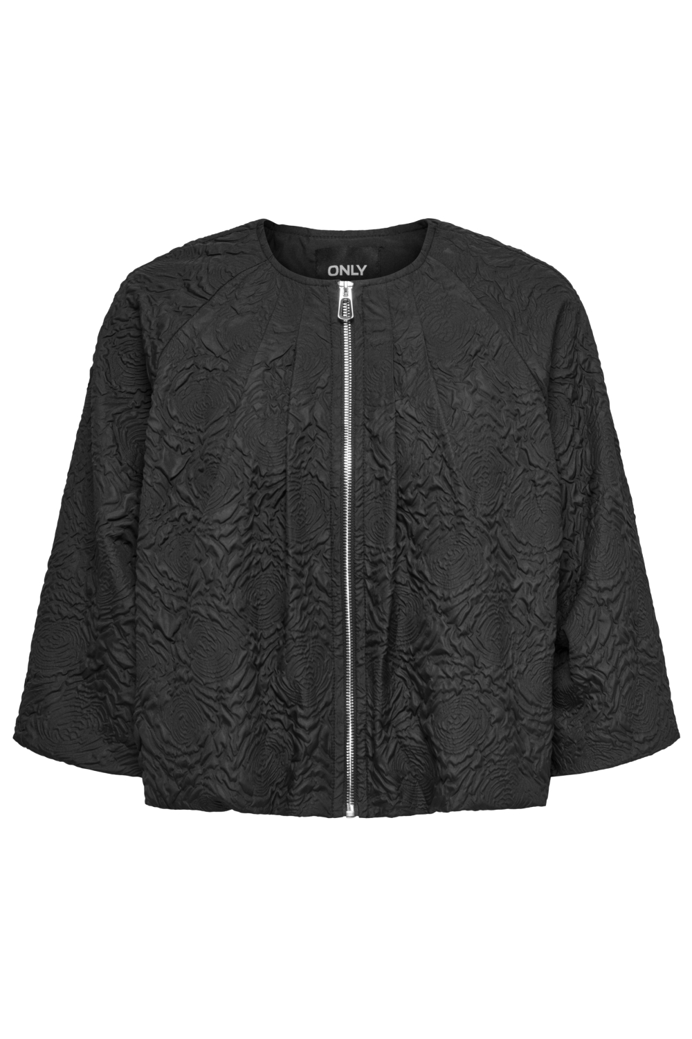 Deze stijlvolle zwarte jas van Only is een must-have voor je herfstgarderobe. De jas heeft een unieke structuur in de stof, wat een mooie visuele diepgang geeft. Met de regular fit pasvorm is het comfortabel en makkelijk te combineren met verschillende outfits. De ronde hals en de zilveren ritssluiting voegen een modern tintje toe, terwijl de 3/4 mouwlengte zorgt voor een speelse uitstraling.