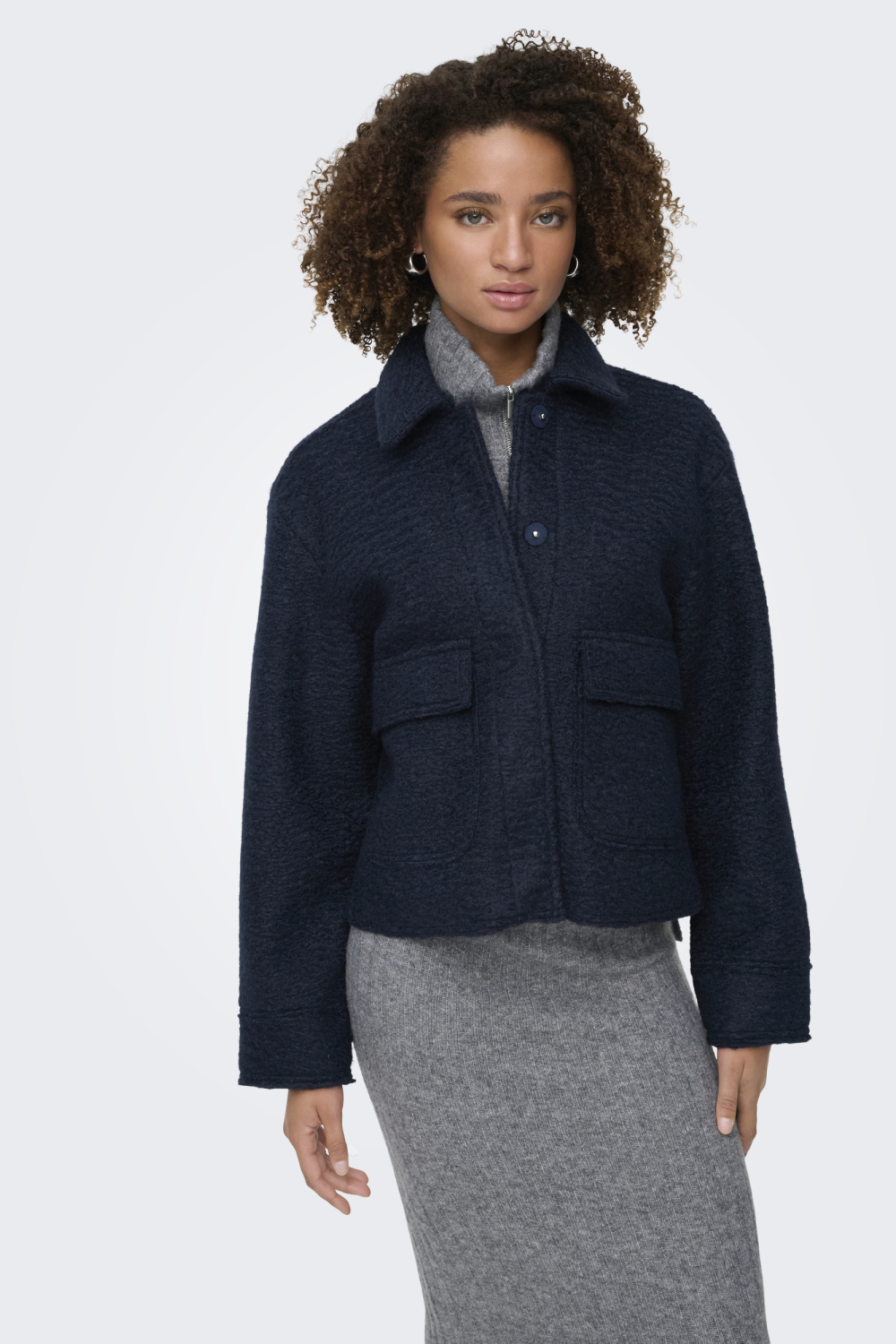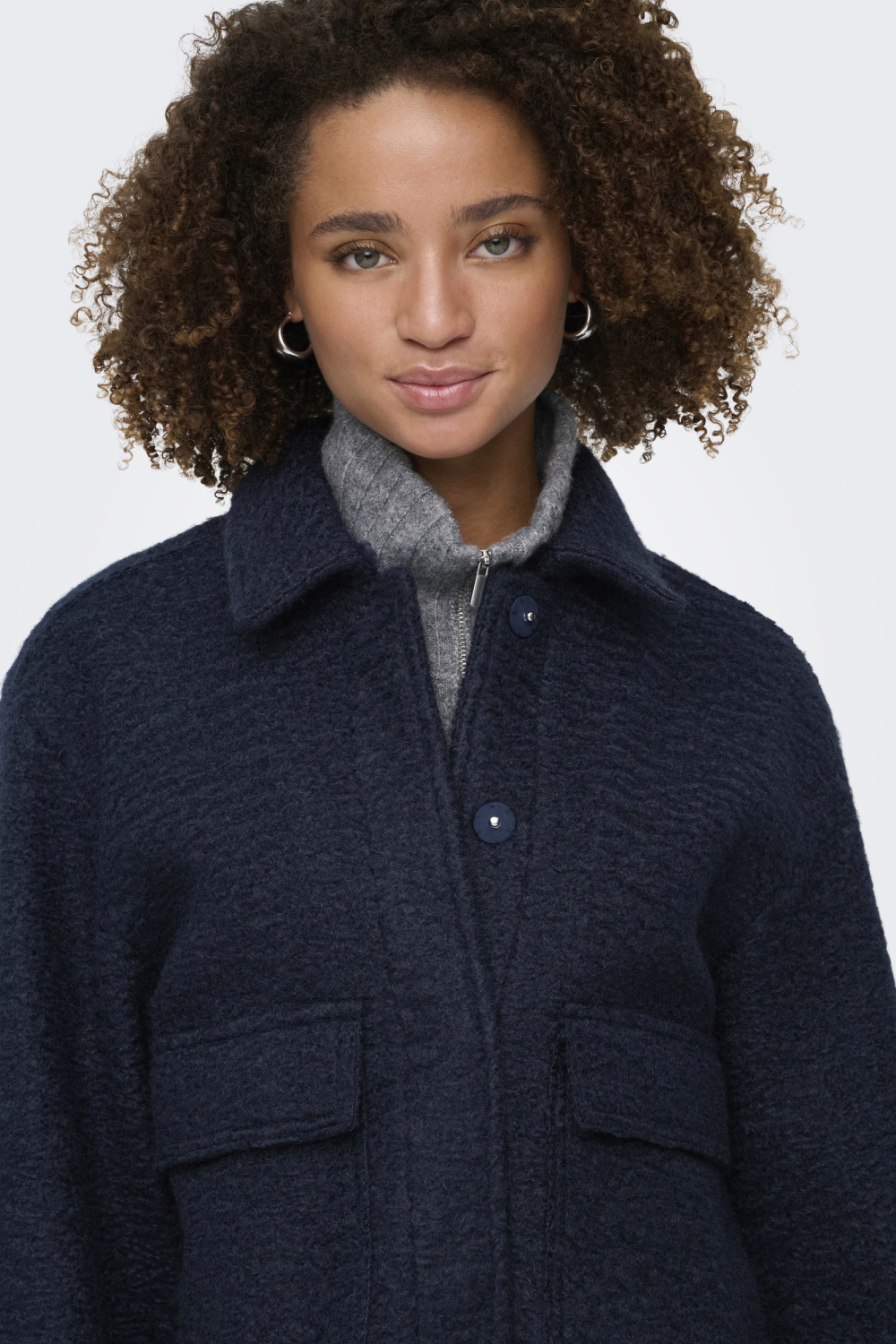 Deze stijlvolle jas van Only, in de diepblauwe tint 'night sky', is een onmisbare toevoeging aan je wintergarderobe. Met een regular fit en vervaardigd uit 100% polyester, biedt de jas je zowel comfort als bescherming tegen de kou. De puntkraag en drukknoopsluiting geven de jas een klassieke uitstraling, terwijl de klepzakken niet alleen praktisch zijn, maar ook een modieuze touch toevoegen. Dit kort vallende model met lange mouwen is perfect voor casual uitstapjes, of je nu een wandeling maakt door de stad of een middagje gaat shoppen. Met zijn veelzijdige design combineer je deze jas eenvoudig met verschillende outfits. Draag hem over een dikke trui en een paar jeans voor een comfortabele en warme look. Of stijl hem met een lange rok en enkellaarsjes voor een meer verfijnde uitstraling. Ideaal voor dagelijks gebruik in de winter, maar ook geschikt voor informele bijeenkomsten met vrienden. Deze jas van Only biedt je precies de juiste balans tussen stijl en functionaliteit, waardoor je in elke situatie goed voor de dag komt. Meer informatie: De totale lengte is 56 cm bij maat S.