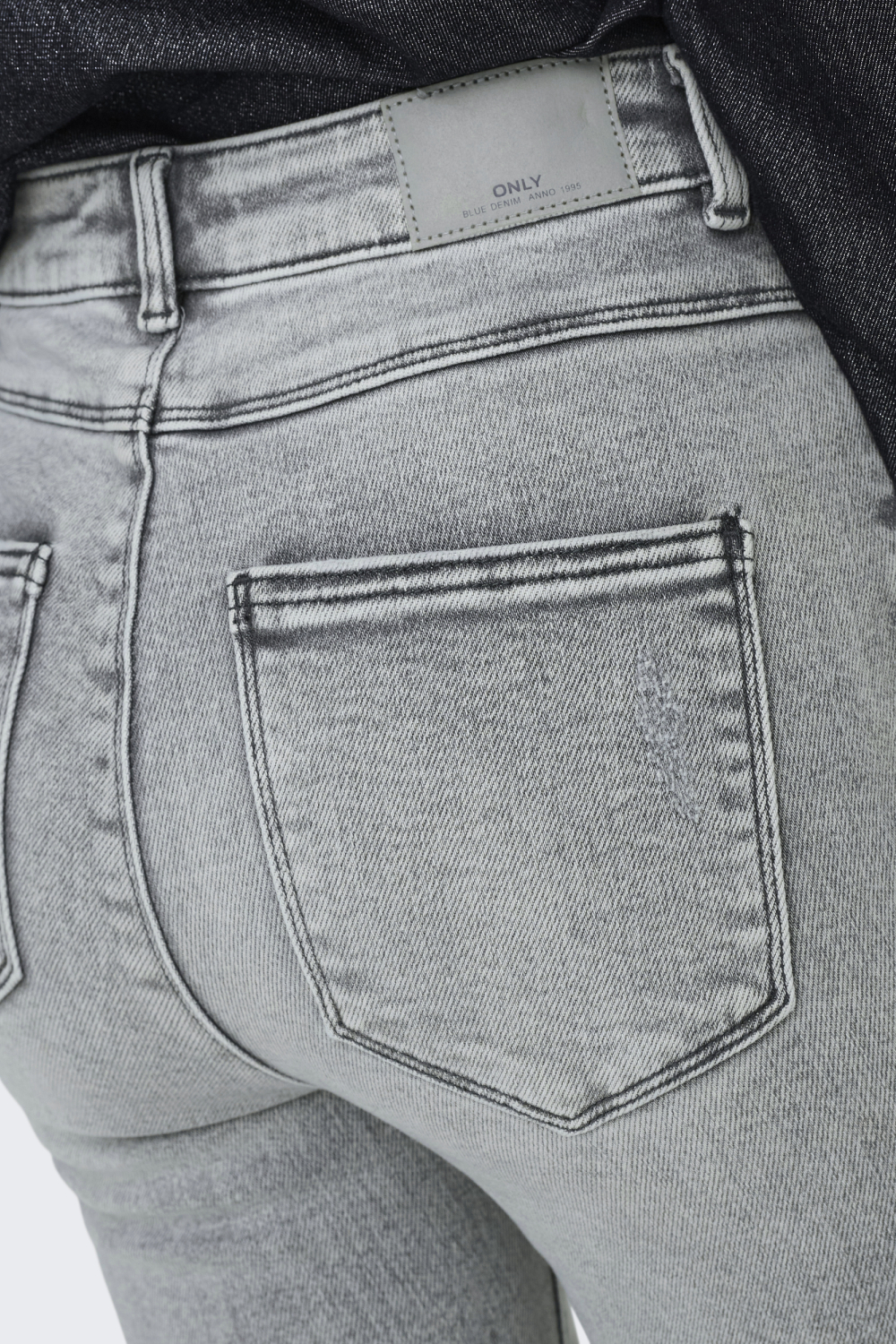 Deze flared jeans van Only heeft een lichte grijze denimkleur met een stijlvolle 'used washed' look. De jeans combineert klassiek met modern en biedt dankzij de 5-pocket stijl praktisch gemak. Gemaakt van een mix van 94% katoen, 4% polyester en 2% elastan, wat zorgt voor een comfortabele pasvorm met een beetje stretch, ideaal voor dagelijks gebruik. De regular waist taille en de knoop-/ritssluiting geven een nette en strakke afwerking, perfect voor zowel casual als iets formelere gelegenheden. Met een normale lengte is deze flared jeans een veelzijdige keuze voor je wintergarderobe. De subtiele flair aan de pijpen voegt een modieus element toe, waardoor je deze jeans kunt dragen bij een breed scala aan outfits. Combineer ze met een strakke blouse voor een avondje uit of met een losse trui voor een ontspannen look. Deze jeans is perfect voor elke vrouw die comfort en stijl met elkaar wil verbinden in haar dagelijkse outfits.