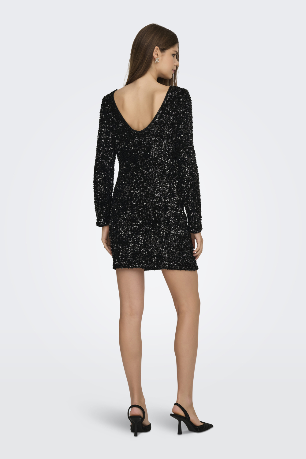 Deze zwarte jurk van Only is de perfecte keuze voor een feestelijke winteravond. De pailletten schitteren subtiel over de hele jurk, wat een elegante en sprankelende uitstraling geeft. Dankzij de regular fit en de comfortabele mix van 95% polyester en 5% elastan, voelt de jurk prettig aan en heb je voldoende bewegingsvrijheid. De ronde halslijn en de lange mouwen maken deze jurk ideaal voor de koude wintermaanden, terwijl de korte lengte een speelse touch toevoegt aan je look.