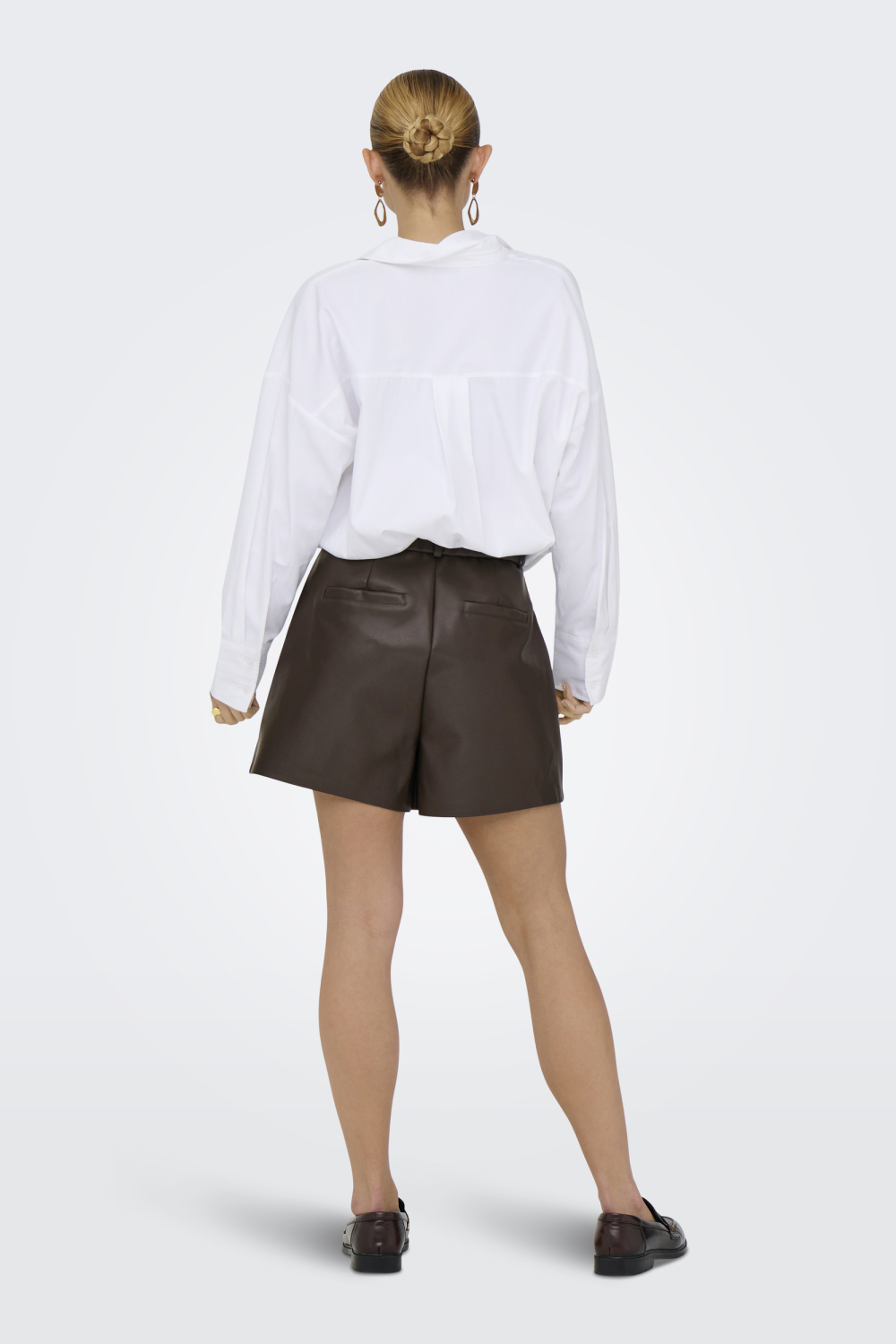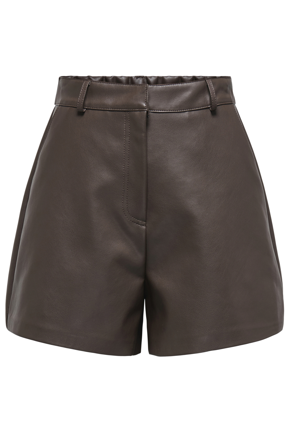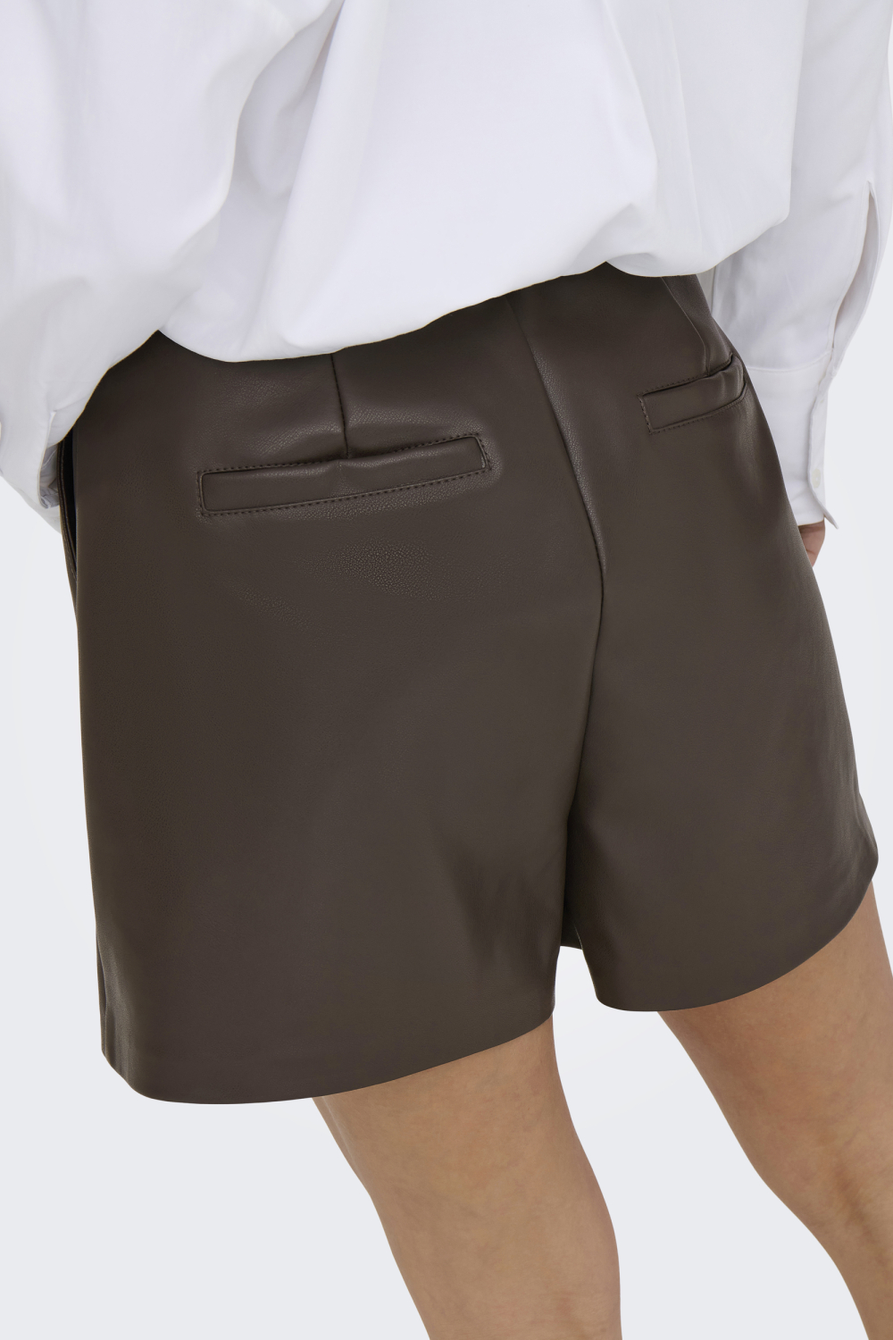 Deze stijlvolle Only korte broeken in Seal Brown zijn een veelzijdige aanvulling op je wintergarderobe. Gemaakt van 100% PU, bieden ze een imitatieleer look die jouw outfit een trendy en moderne uitstraling geeft. Met een regular fit en een normale lengte zijn deze shorts een comfortabele keuze voor casual gelegenheden. De knoop- en ritssluiting zorgt voor een praktische en nette afwerking, terwijl de steekzakken aan de voorzijde een praktisch element toevoegen.