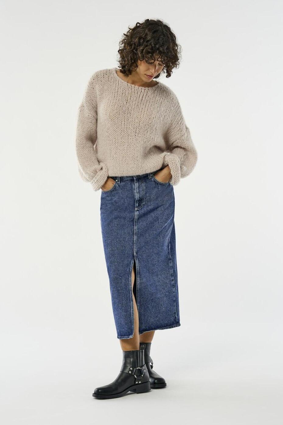 Deze medium blue denim rok van Only is een veelzijdige keuze voor je garderobe. Met zijn regular pasvorm en 7/8 lengte biedt deze rok een klassieke uitstraling die gemakkelijk overal mee te combineren is. De bleached wash geeft de denim een frisse, moderne look, terwijl de vijf zakken het ontwerp een casual en functionele toets geven. De subtiele split aan de voorzijde voegt net dat beetje extra stijl toe aan deze tijdloze rok. Of je nu een dag op kantoor doorbrengt of een ontspannen middag in de stad, deze rok past perfect bij verschillende settings. Gemaakt van 100% katoen, biedt hij comfort en ademend vermogen. De regular waist en knoop/ritssluiting zorgen ervoor dat de rok prettig zit en eenvoudig aan te passen is aan jouw stijl. Combineer met je favoriete sneakers voor een casual look, of kies voor laarsjes voor een meer trendy uitstraling. Met deze rok van Only ben je altijd stijlvol en comfortabel gekleed. Meer informatie: Totale lengte is 82 cm bij maat XL.
