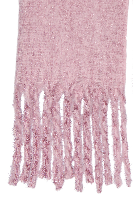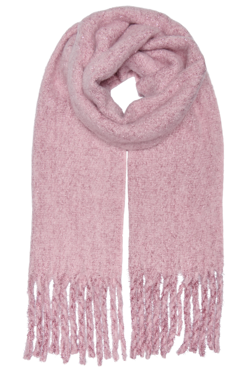 De Only dames sjaal uit de Knitwear collectie is een stijlvolle toevoeging aan je wintergarderobe. Deze sjaal is gemaakt van 95% polyester en 5% metaalgaren, wat zorgt voor een subtiele glinstering die perfect is voor de koude maanden. Het zachte roze met een vleugje glitters maakt de sjaal een opvallende maar toch elegante keuze. De franjes aan de uiteinden geven een speelse touch en maken het geheel compleet.