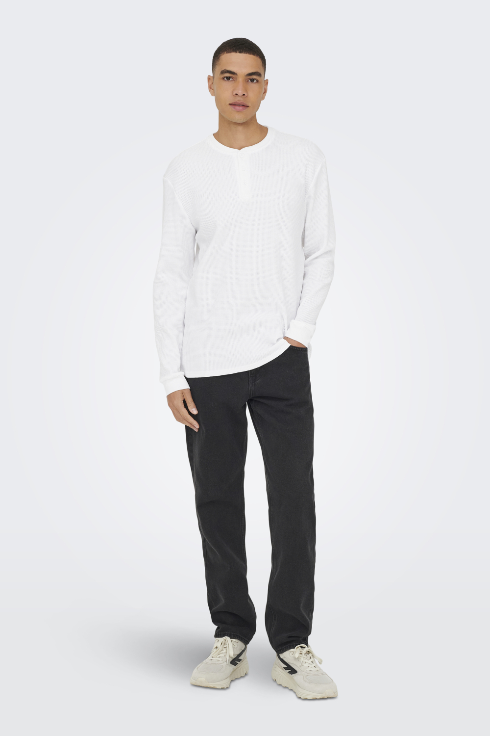 Deze Only & Sons jeans in Washed Black is een veelzijdige toevoeging aan je casual garderobe. Het straight fit ontwerp zorgt voor een tijdloze uitstraling die geschikt is voor zowel dagelijkse activiteiten als informele gelegenheden. Met een knoop- en ritssluiting biedt deze broek jou comfort en gemak. De jeans is vervaardigd van 79% katoen en 21% polyester, waardoor hij zacht aanvoelt en een stevige pasvorm behoudt. De rinsewash maakt deze jeans extra stijlvol en makkelijk te combineren met diverse outfits. Of je nu kiest voor een trendy T-shirt of een nette blouse, deze jeans vormt de ideale basis. Met zijn 5-pocket stijl en normale lengte is het een praktische keuze voor elke dag, terwijl de regular waist zorgt voor een comfortabele pasvorm. Perfect voor een relaxte dag met vrienden of een informele werkdag.