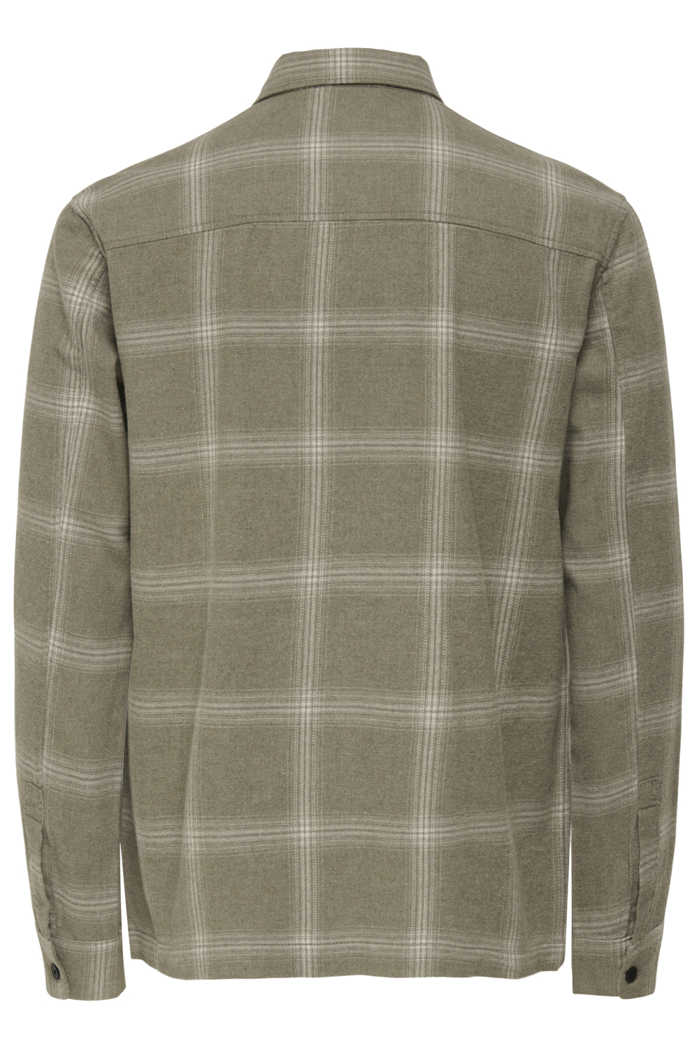Only & Sons taupe heren overhemd | VooraanzichtOnly & Sons taupe heren overhemd | Achteraanzicht