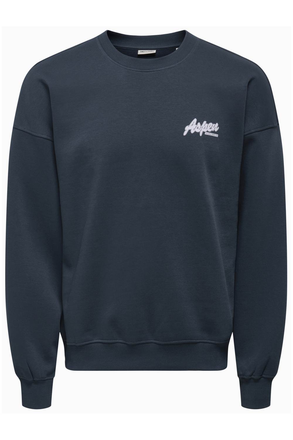 Deze casual sweater van Only & Sons, speciaal ontworpen voor heren, vormt een stijlvolle en comfortabele aanvulling op je wintergarderobe. Gemaakt van een zachte sweatstof met 65% katoen en 35% polyester, biedt de trui een aangenaam draagcomfort. Met een regular fit pasvorm ben je verzekerd van een ontspannen look die moeiteloos past bij verschillende outfits. De donkerblauwe kleur en de opvallende print op de rug geven deze sweater een bijzonder karakter, ideaal voor informele gelegenheden.